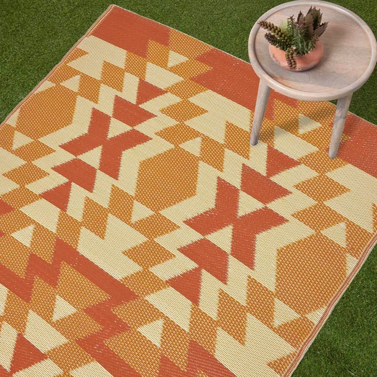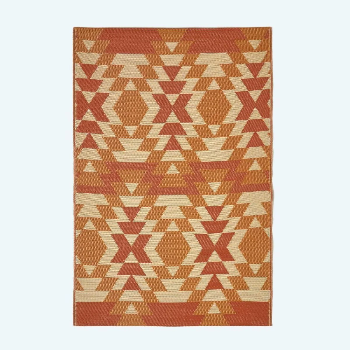 Warm up your outdoor space with this autumnal coloured Azted print rug. Available in four sizes to suit a variety of spaces, this washable outdoor rug can be used on patios, footpaths and on grassy areas. Pair with our range of orange seat pads and throws for a complete look to any outdoor seating area.