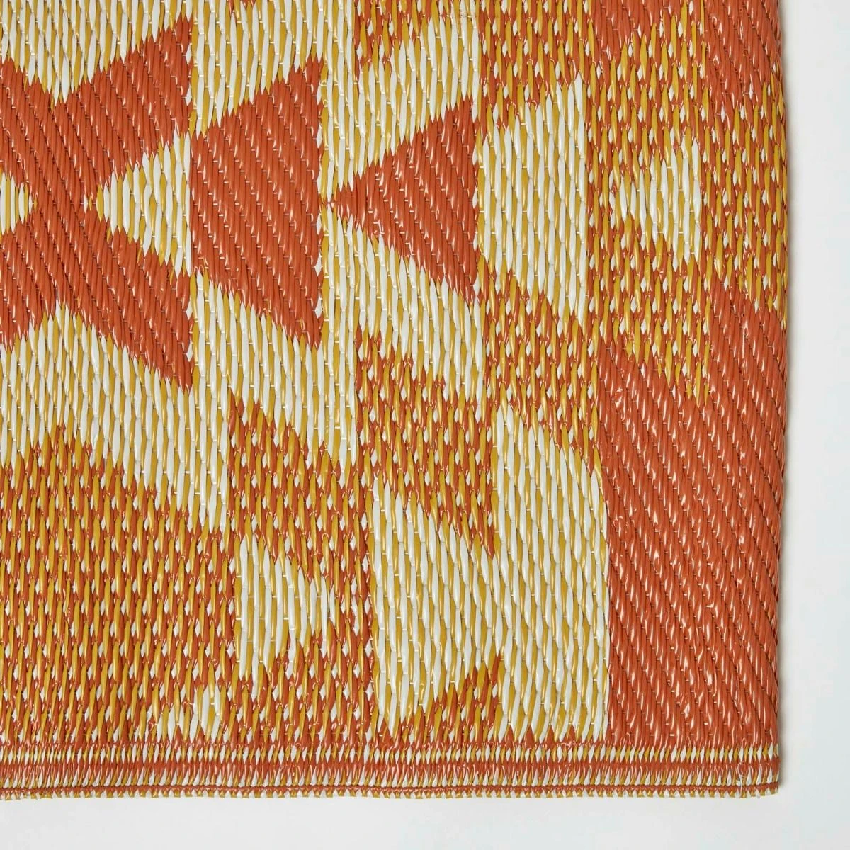 Add a splash of colour to your space with the Anya garden rug. Woven with vibrant shades of orange and red, this waterproof outdoor rug is available in several sizes with a reversible design.