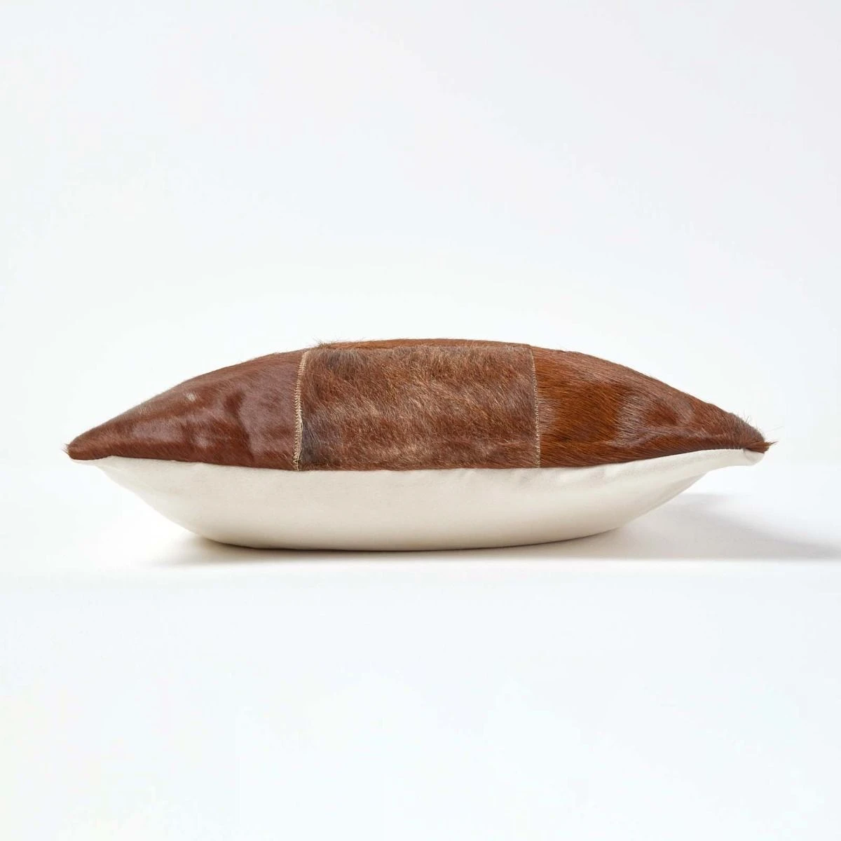Update your home interiors with this completely unique goat hair cushion. Adding texture and style to your living room, this decorative cushion has been created with a patchwork design of various goat hair shades, making each cover completely special and unique.