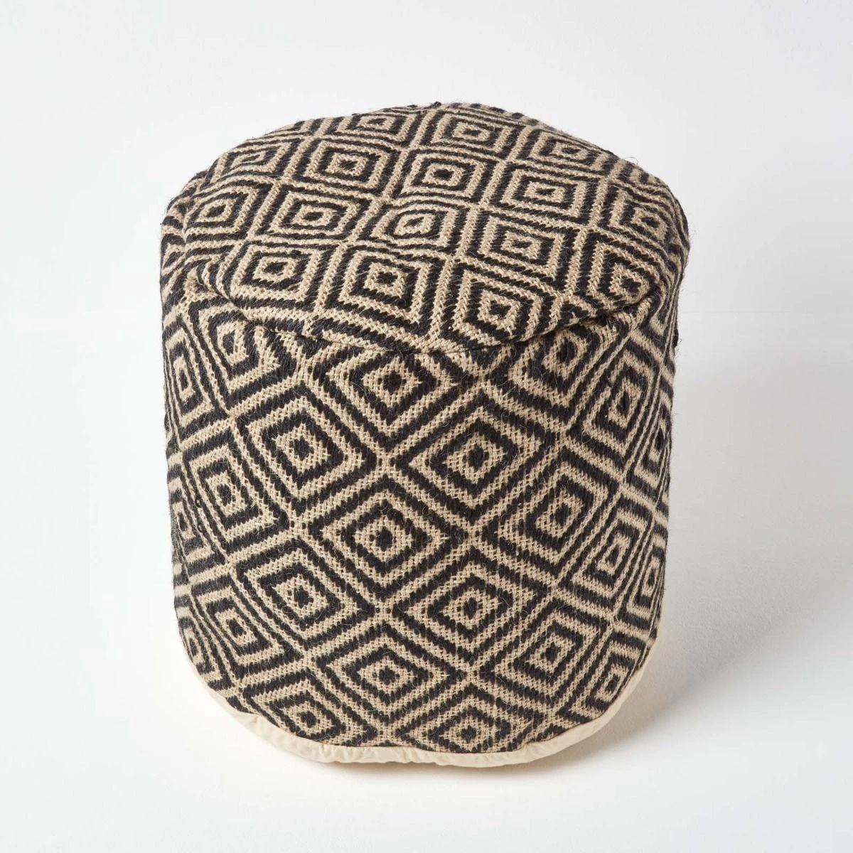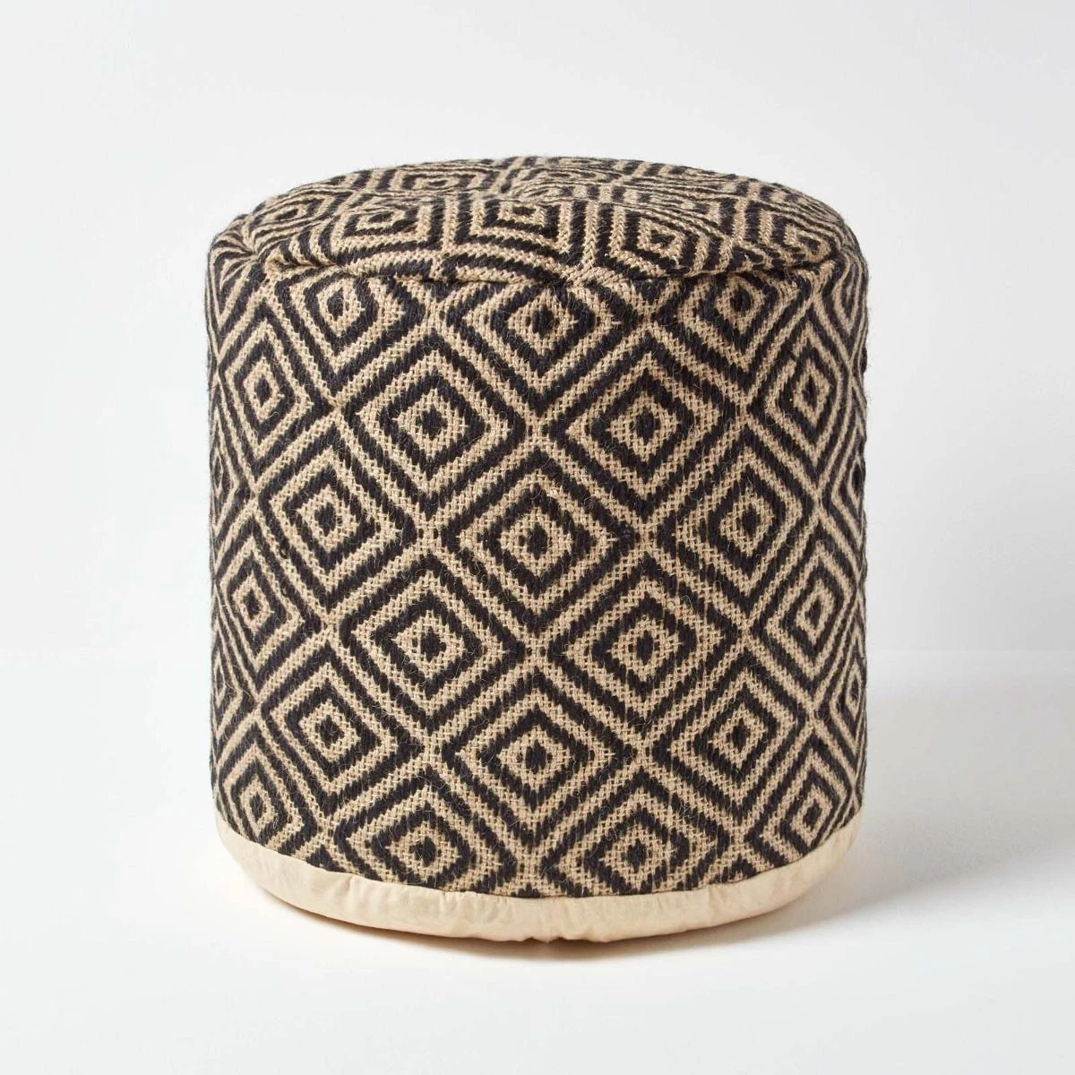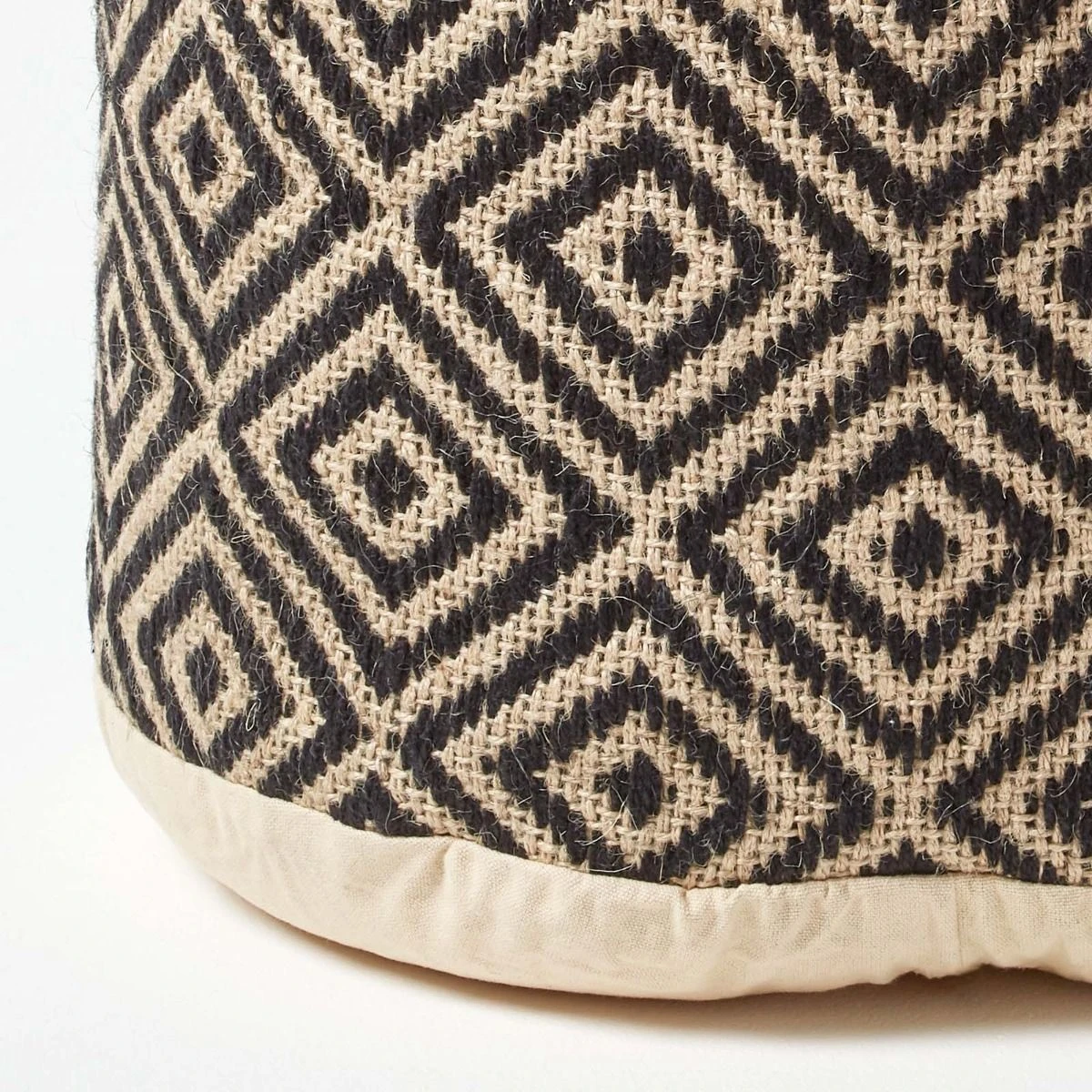 Beanbag from Homescapes, this Aztec style Jute black and cream round bean filled footstool is the perfect accessory for any home and will look great in any living room.