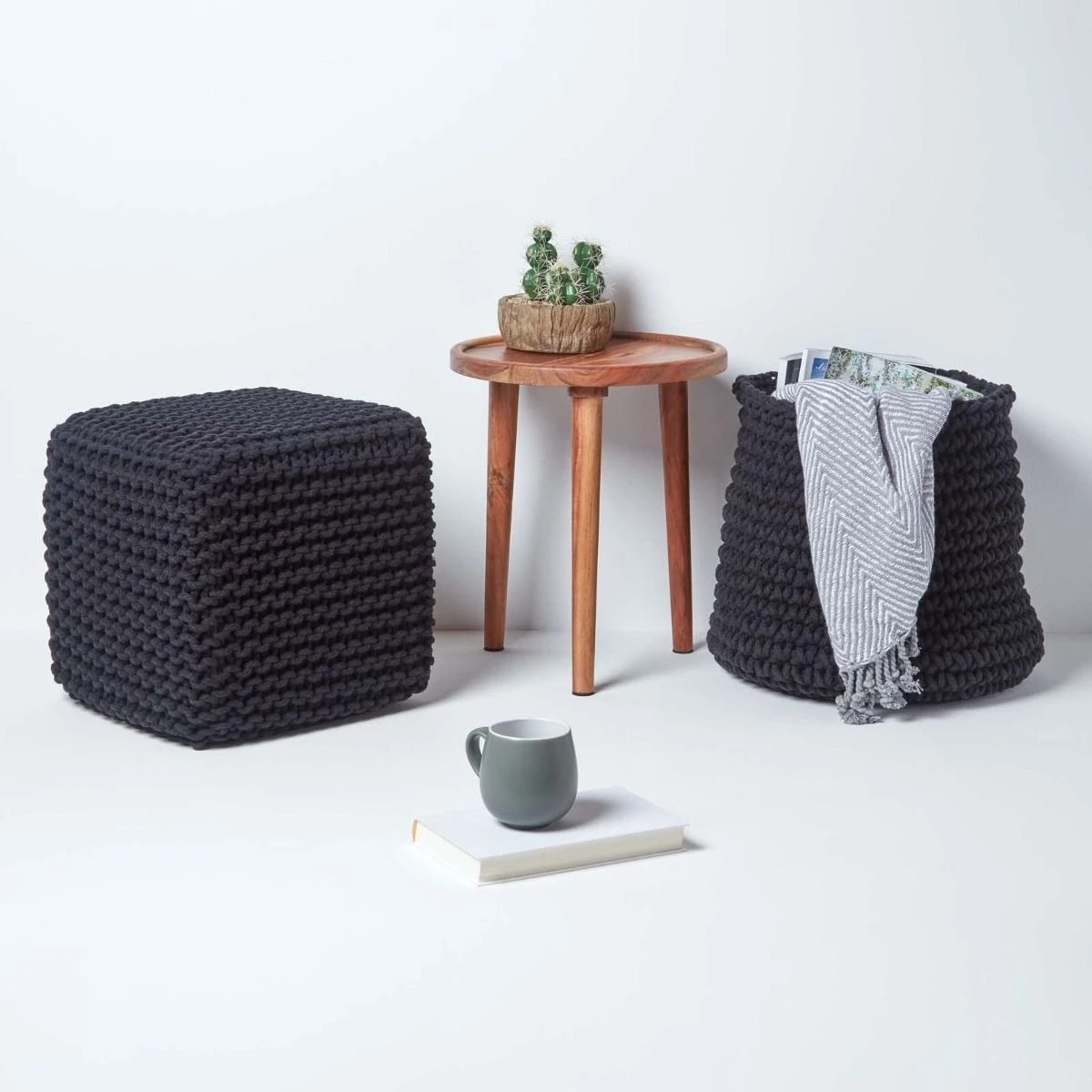 Be the first to review “Black Cube Cotton Knitted Pouffe Footstool” Cancel reply