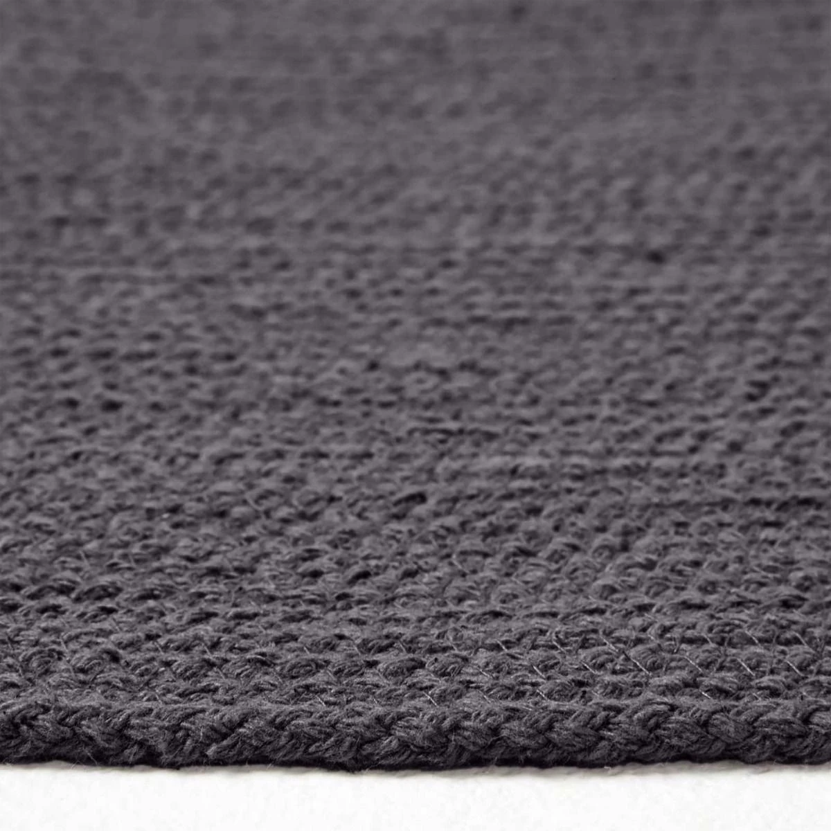 Black handmade braided oval rug for bedroom, living room or hallway decoration.Woven from a cotton rich blend, available in a range of sizes.