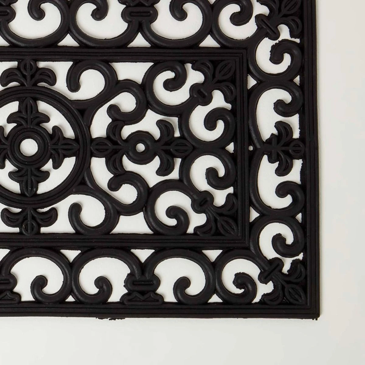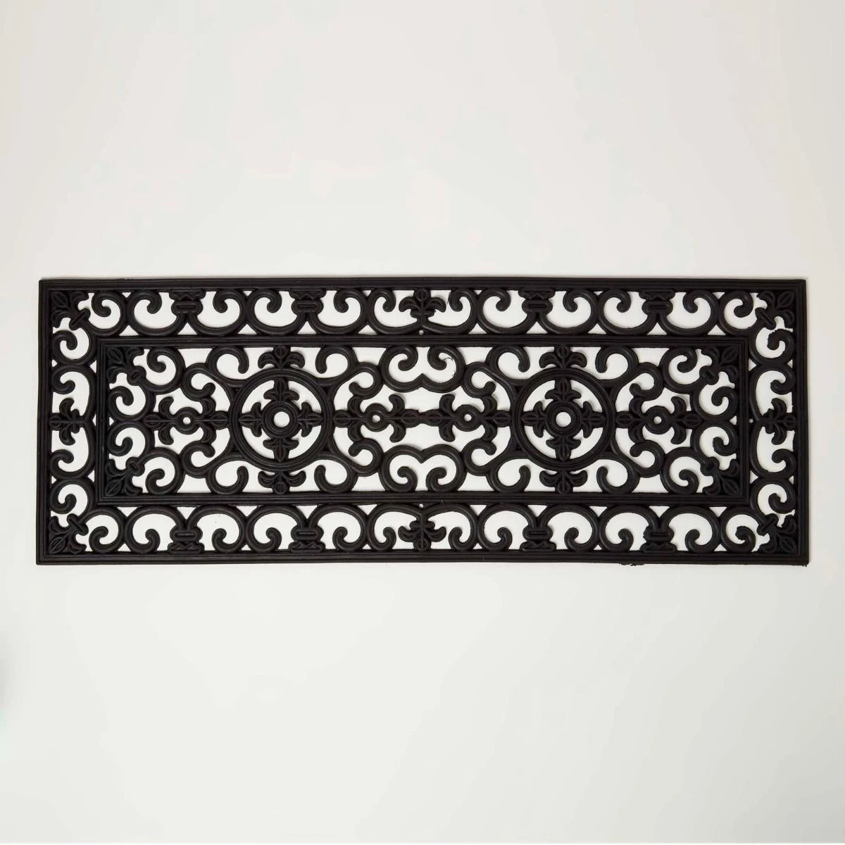 Extra-large double door mat, classic iron effect rubber door mat with Parisian style design. An extra-long non-slip runner doormat for outdoor use.