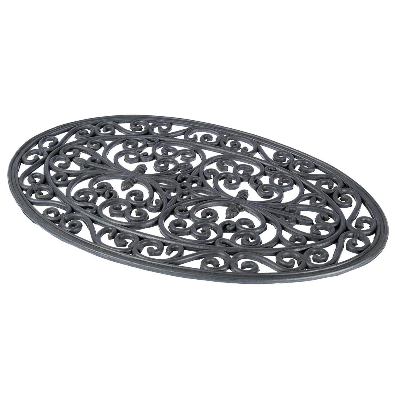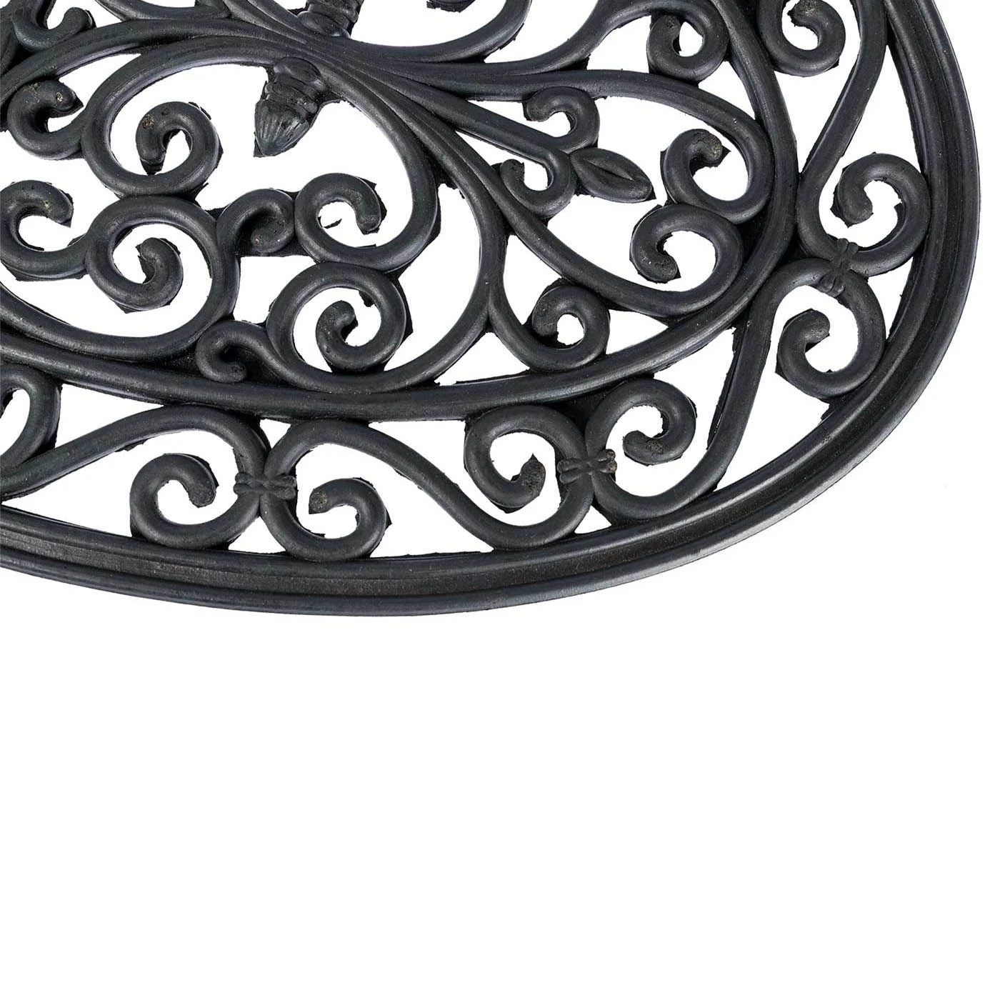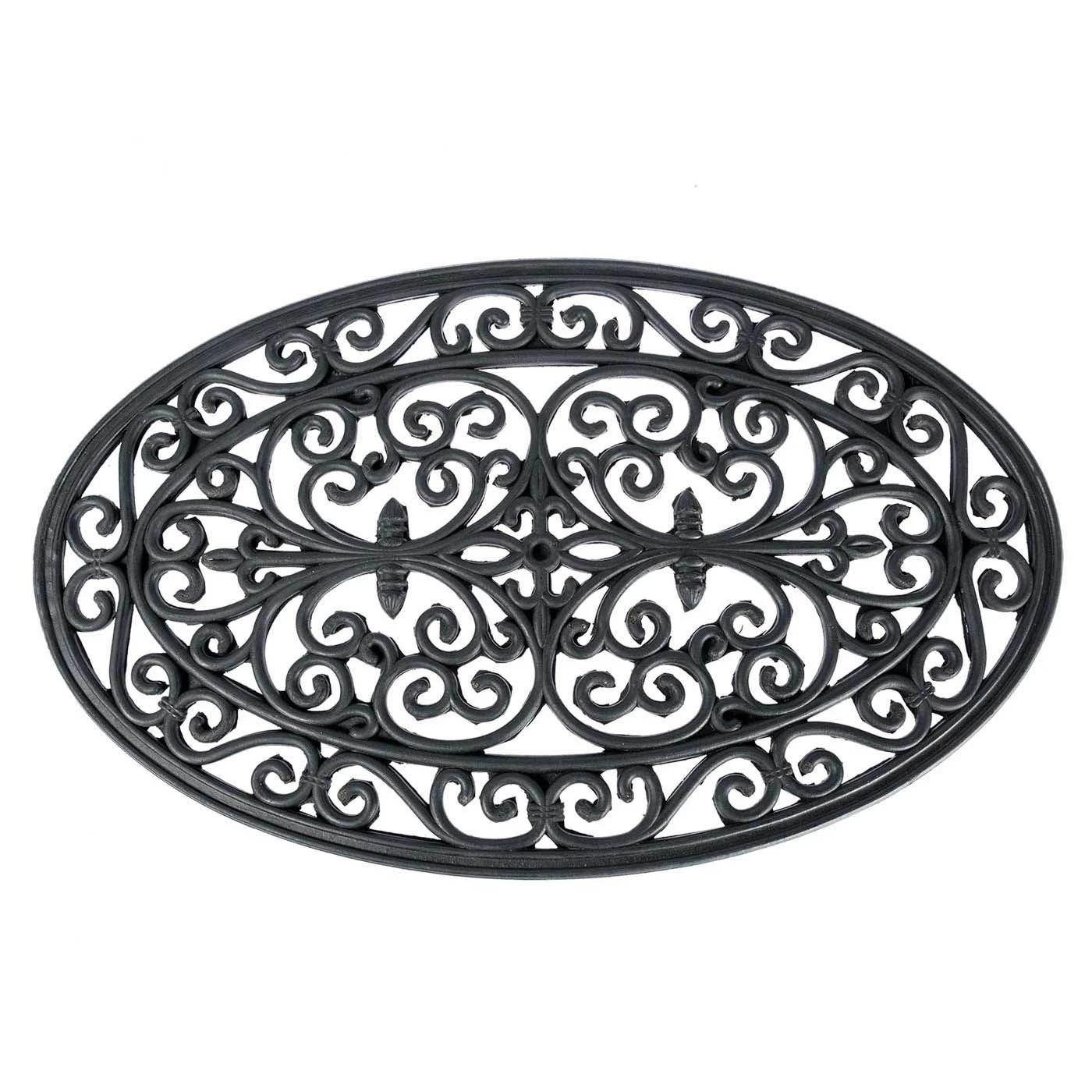 Victorian style oval doormat, wrought iron effect rubber doormat designed for outdoor use, this anti-slip doormat is manufactured from 100% durable rubber.