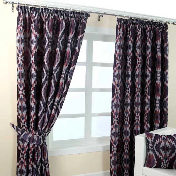 Make a bold statement in a pale room or add a highlight to dark purple walls with our multi-tonal, berry coloured curtains with a contemporary diamond pattern.