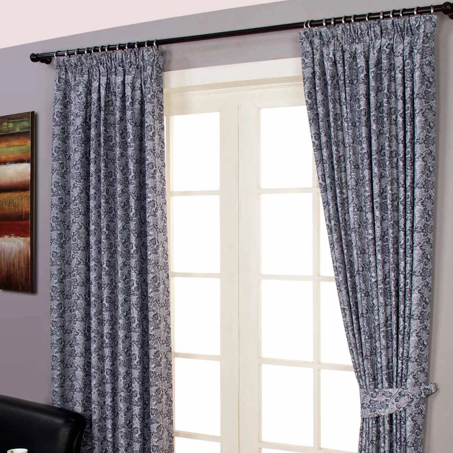 This readymade curtain pair is pencil pleated and fully lined for a gorgeously full drape. The jacquard weave design features an intricate, floral bouquet pattern with vintage undertones, teamed with a porcelain-style, blue-toned colour scheme for a classic, antique look. High Quality Weave These high quality curtains are woven using specially selected, lustrous threads to create a lightly textured finish with glossy highlights throughout the design. Available in a choice of nine different sizes, you are sure to find a pair to fit your window perfectly, bringing a beautiful, calm accent to your room. Allow to drape loosely for free-spirited style, or use with our matching tie-backs for a more traditional look.