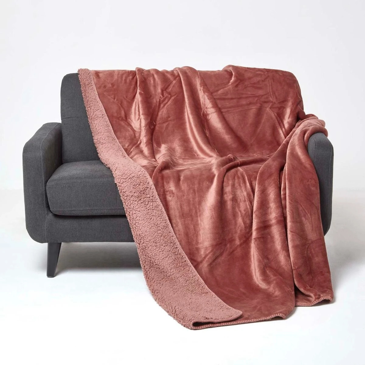 Pink fleece throw, with a ultra soft velvety finish and teddy bear feel underside. This luxury on-trend pink throw is both stylish and functional, keeping you cosy warm. Complementing both modern and traditional interiors and colours, this blush pink throw is ideal for bedrooms and living spaces and makes the perfect gift for loved ones.