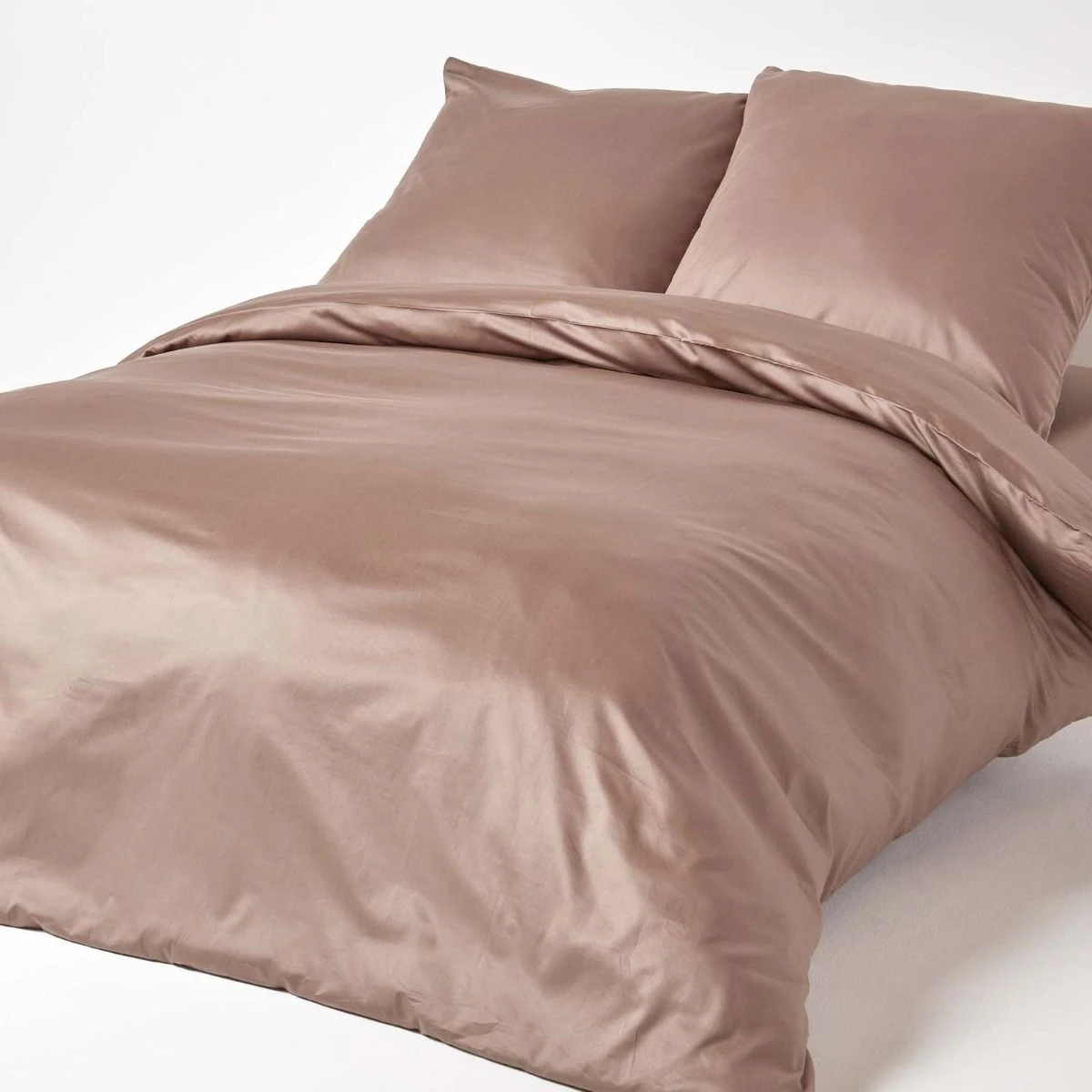 Part of the organic bedding range from Homescapes, this brown top class duvet cover set demonstrates the quality that a 400 thread count fabric can bring. The stitching length on these products is uniformly high, and the duvet covers and pillowcases both have deep overlaps which makes it a breeze to change the covers. Matching sheets and other organic bedding is also available from Homescapes and all of the organic cotton range is machine washable up to 40 degree centigrade with hypoallergenic and anti-dust mite properties. Our continental duvet cover sets are available in 4 colours and come with 80 x 80 cm pillow cases. Size 155 x 200 cm (incl. 1 pillow case), 155 x 220 cm (incl. 1 pillow case), 240 x 220 cm (incl. 2 pillow cases)