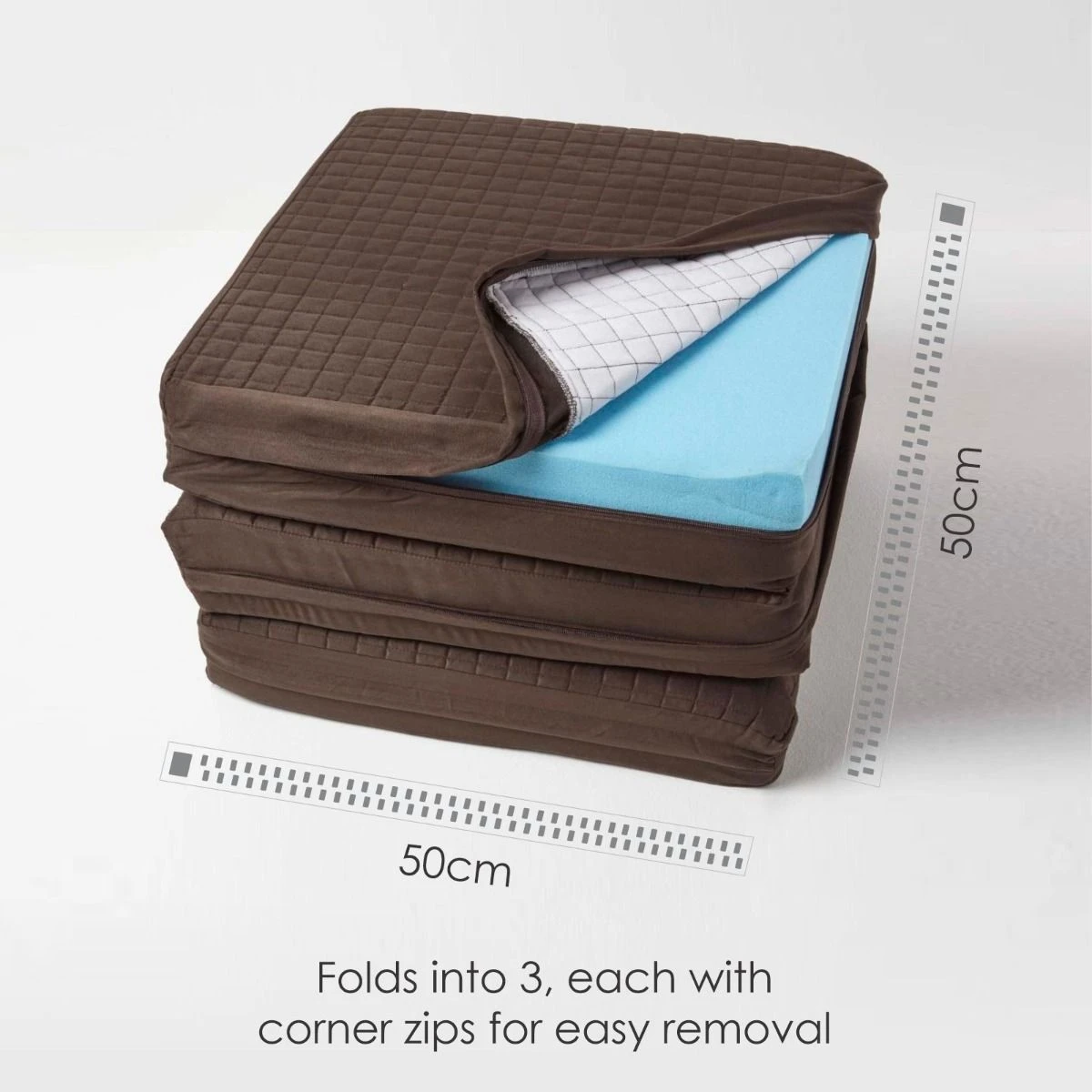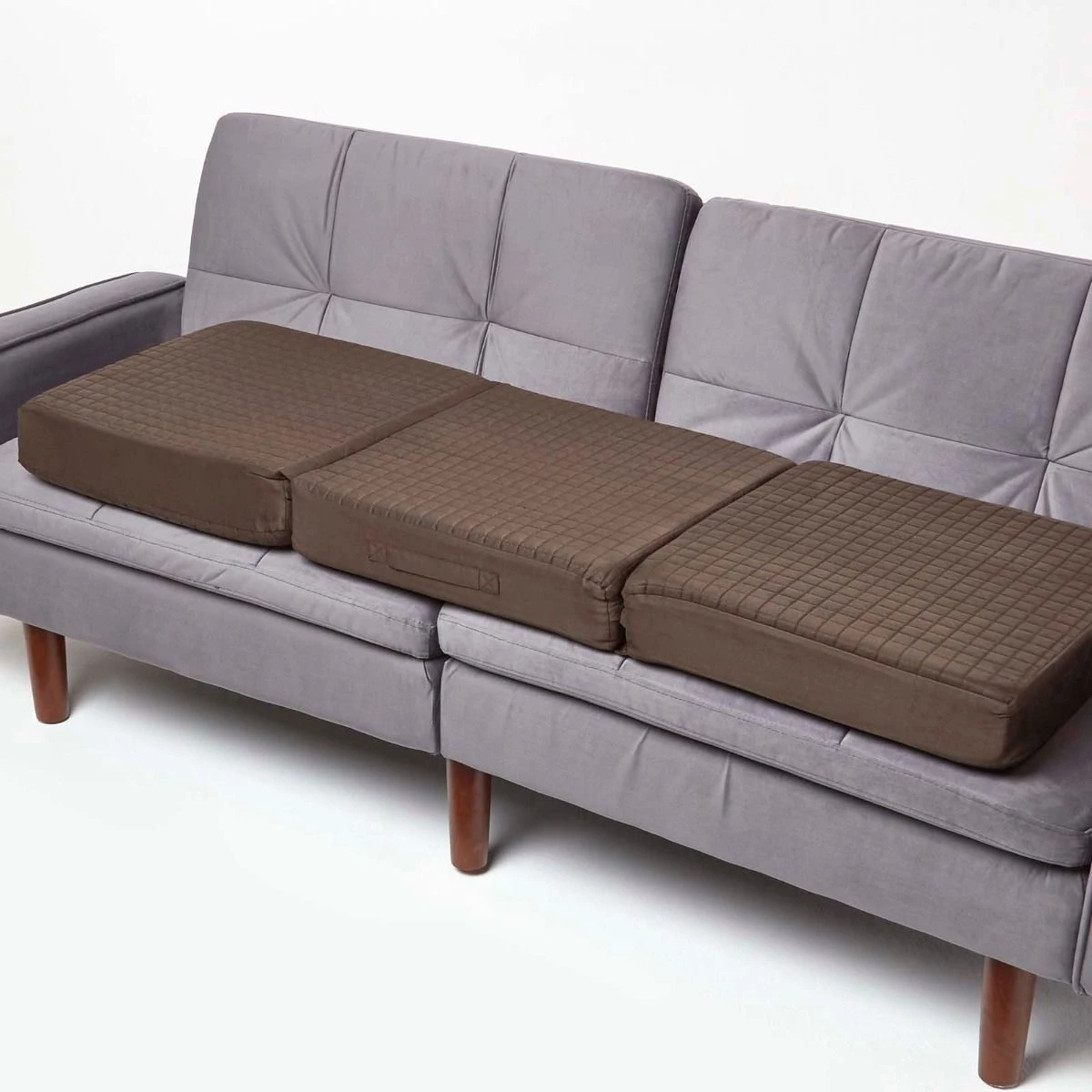 Chocolate brown extra-large 3 seater faux suede booster cushion with removable soft quilted cover, firm and supportive orthopaedic foam filled seat cushion for the elderly and pregnant women.