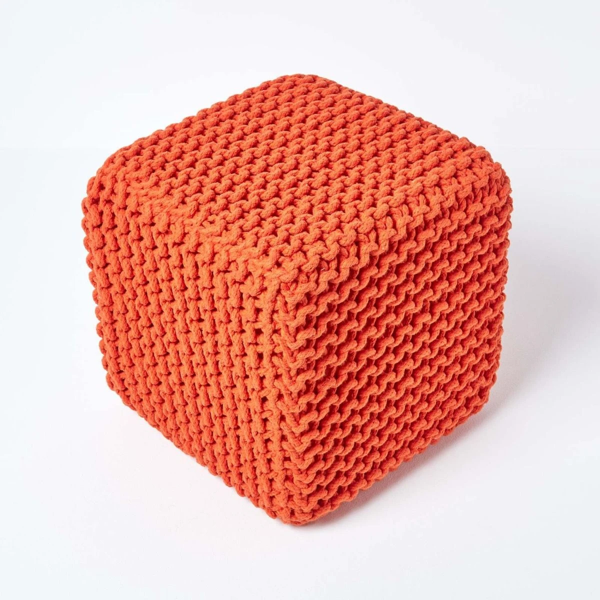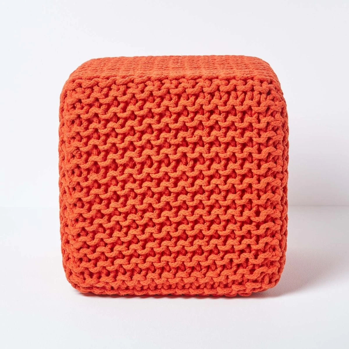 Burnt Orange Cube Cotton Knitted Pouffe Footstool