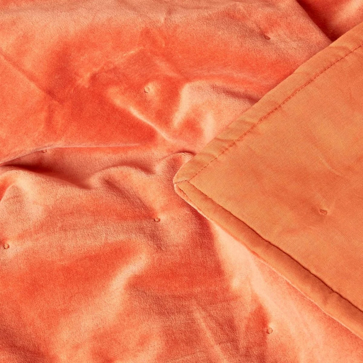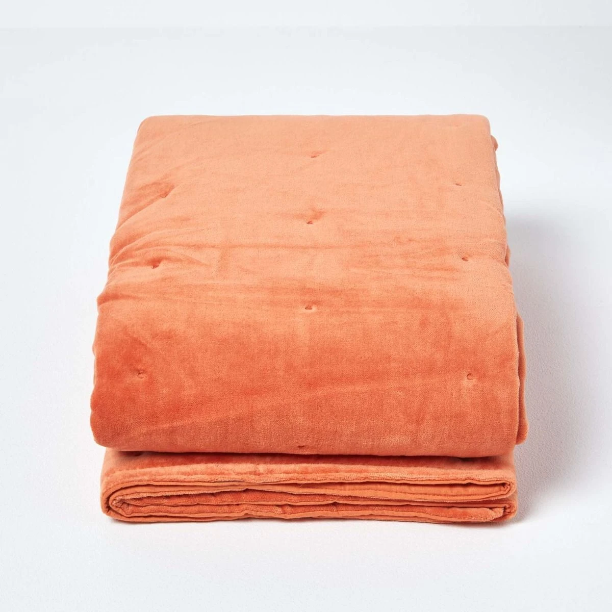 Burnt orange velvet throw woven from 100% cotton velvet, this quilted throw has handstitched embroidered dots and is filled with polyester fibre for extra warmth.