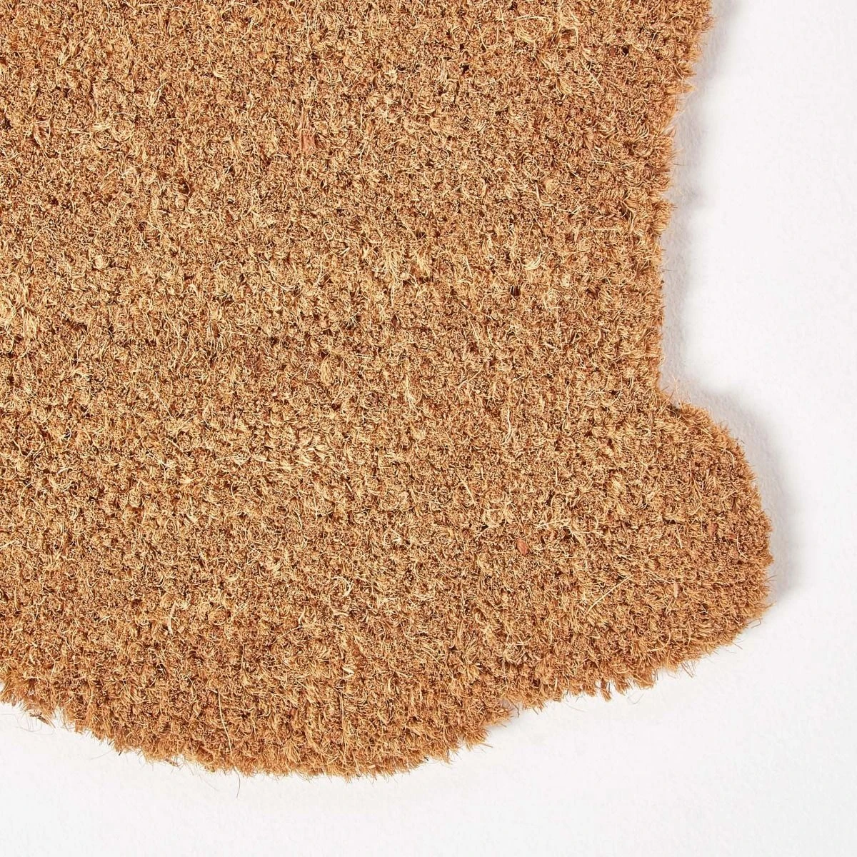 Cat door mat from Homescapes, light brown sitting car doormat woven from coarse coir material and including a PVC anti-slip backing, perfect for cat lovers.