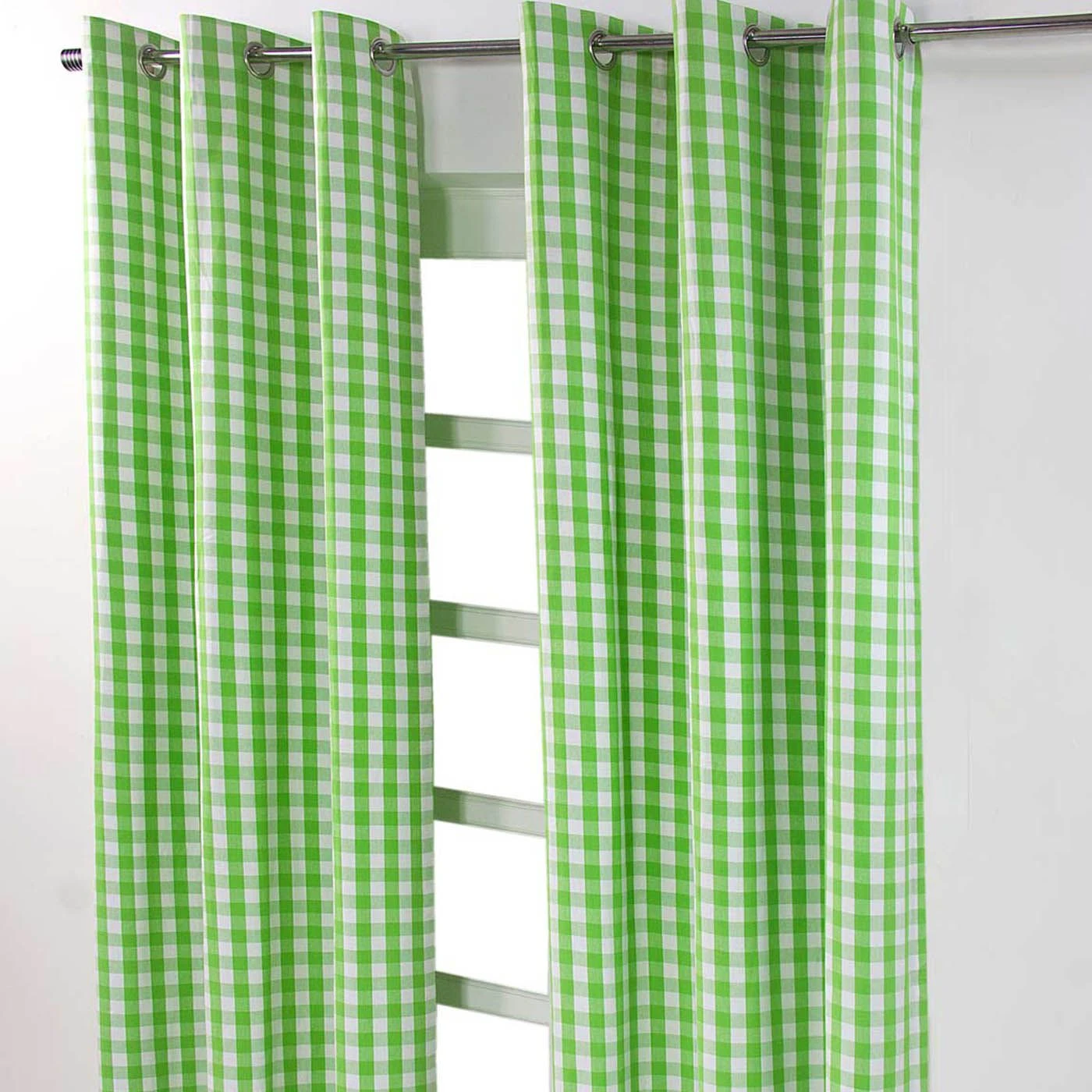 Cotton Green Block Check Gingham Ready Made Eyelet Curtains