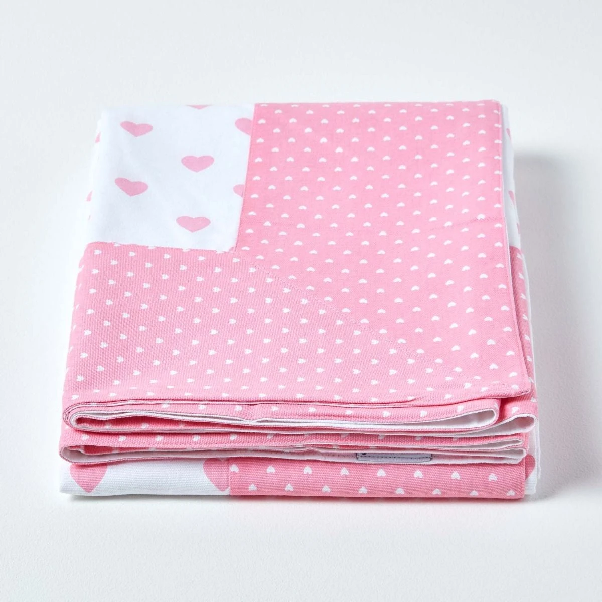 Beautifully patch worked 100% Cotton Hearts Decorative Sofa Throw represent a great mix of simplicity and design. Decorative patch work throw range is made using 100% cotton fabrics. The simple themes like stars, stripes and polka dots when mixed together or with matching plain colours compliments most of the interior decor. There are many other cushions, throws and curtains made with these fabrics in the Homescapes collection which has just been launched. These fabrics are also available with Homescapes to be bought by the meter to make your own soft furnishings. Homescapes are well known for their very high standards of quality and service which lends a huge credibility to this range.