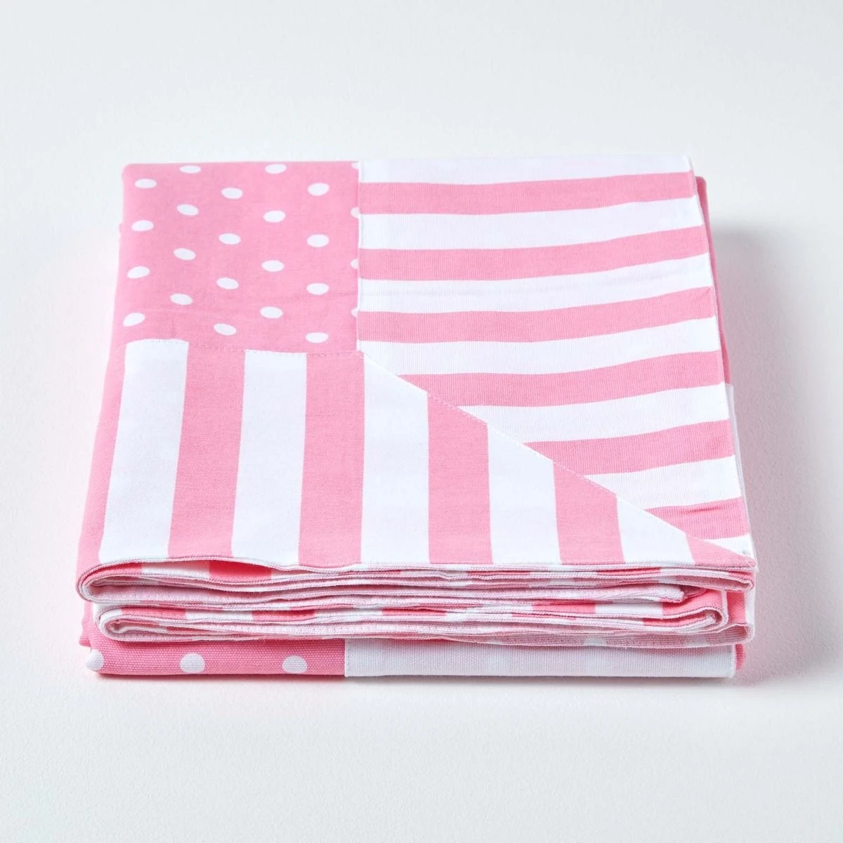 Stylish and chic sofa throw from Homescapes, woven from 100% cotton, this pink cover features white polka dots and stripes. Available in size 150 x 200 cm.