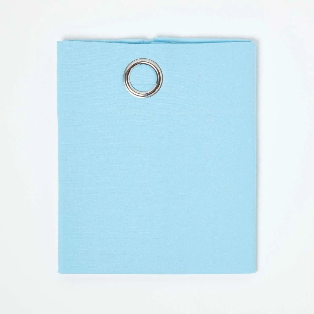 Cotton Plain Blue Ready Made Eyelet Curtain Pair