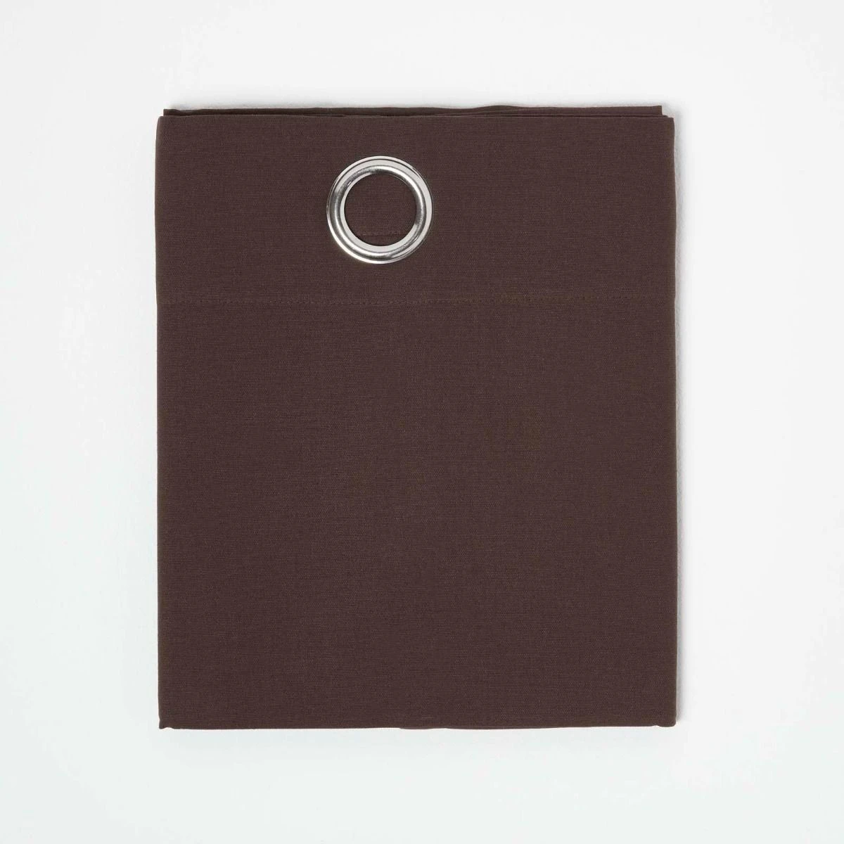 Cotton Plain Chocolate Ready Made Eyelet Curtain Pair