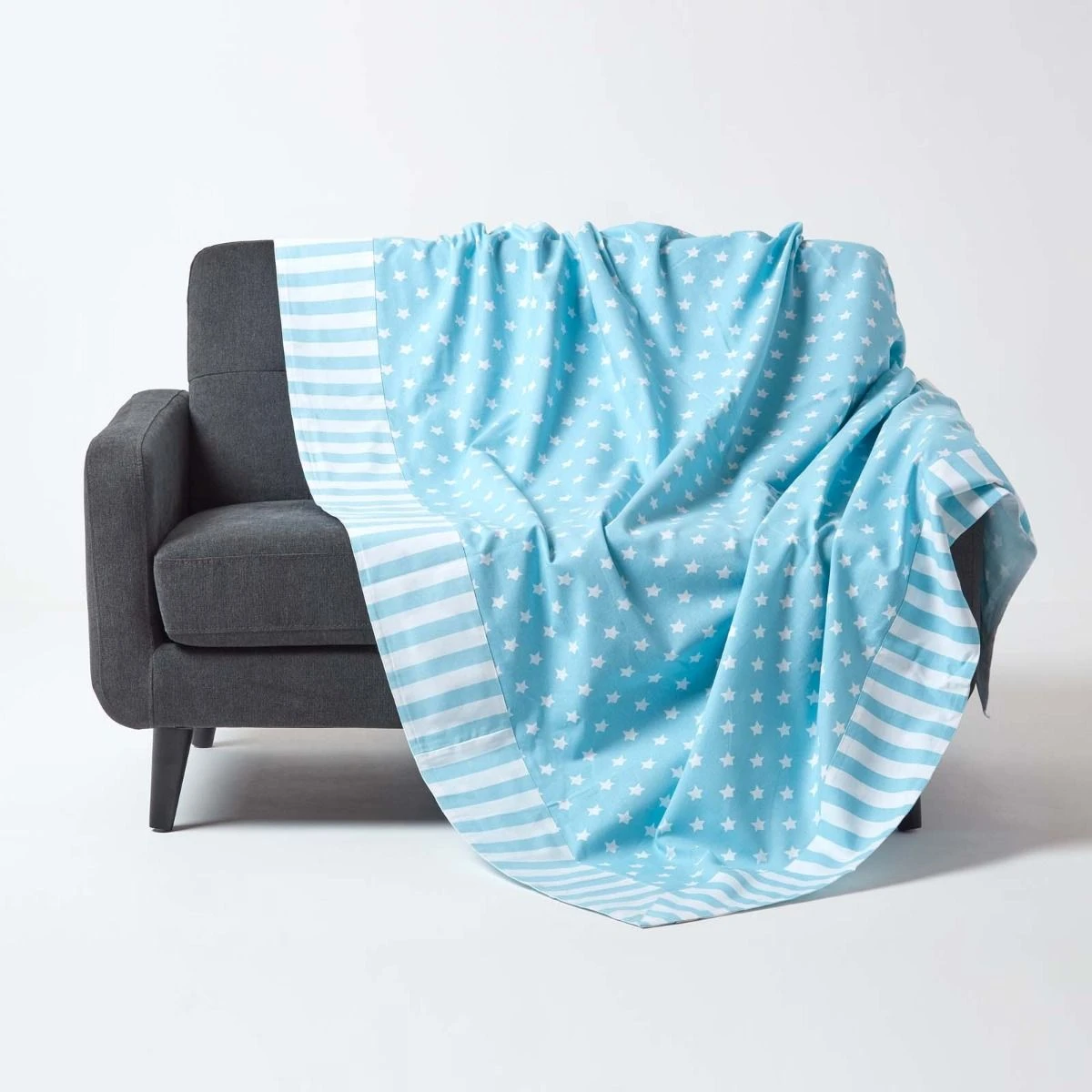 Beautifully patch worked 100% Cotton Stars Decorative Sofa Throw represent a great mix of simplicity and design. Decorative patch work throw range is made using 100% cotton fabrics. The simple themes like stars, stripes and polka dots when mixed together or with matching plain colours compliments most of the interior decor. There are many other cushions, throws and curtains made with these fabrics in the Homescapes collection which has just been launched. These fabrics are also available with Homescapes to be bought by the meter to make your own soft furnishings. Homescapes is well known for their very high standards of quality and service which lends a huge credibility to this range.