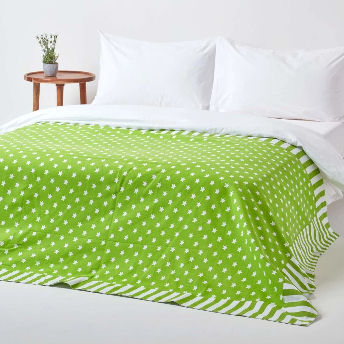 Cotton Stars And Stripes Decorative Green Sofa Throw