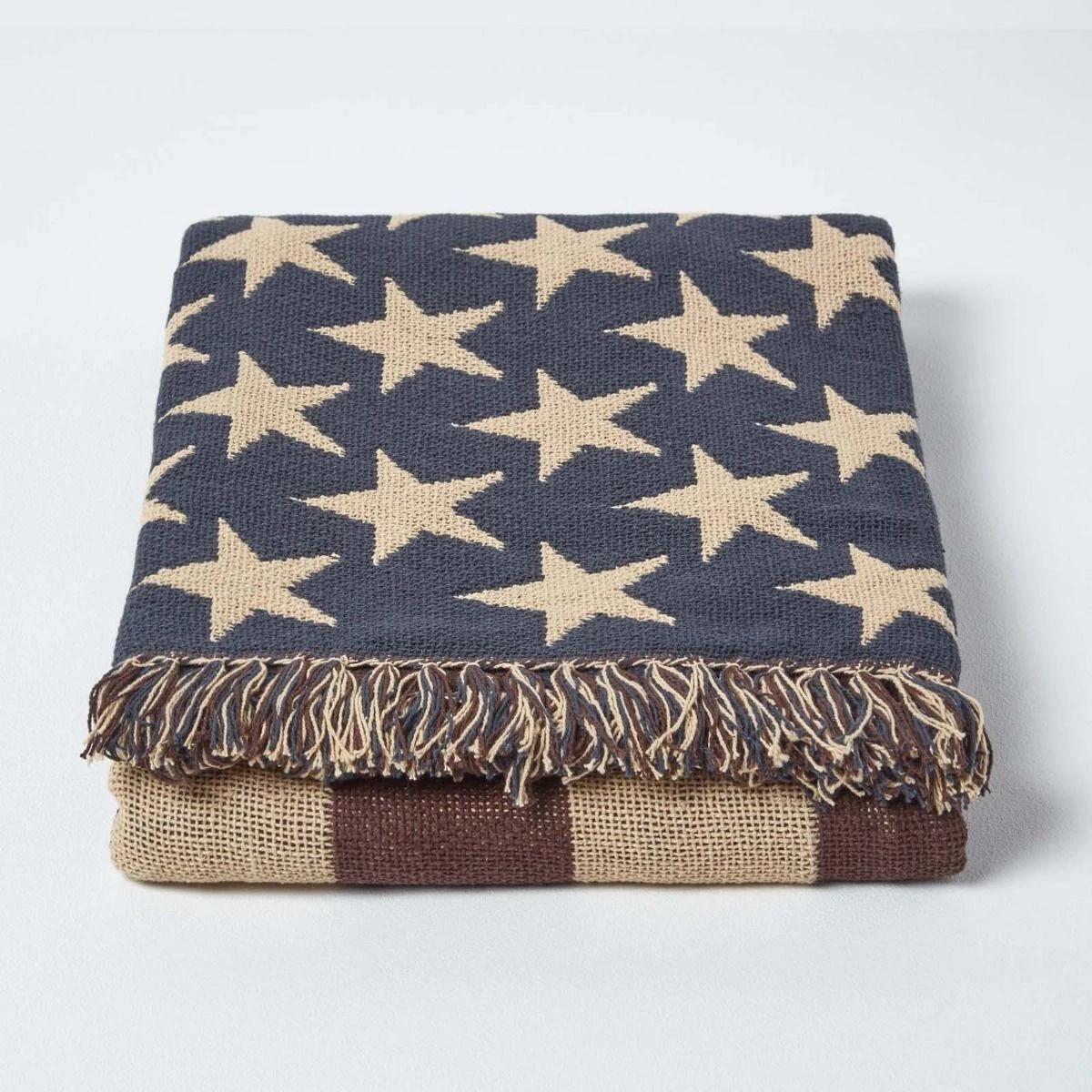 This beautiful throw has been hand woven on traditional jacquard looms. The selection of colours has been done keeping in mind a classic interior setting, with navy/cream and burgundy as principal colours. This would bring about character in your interior in a very subtle fashion. It’s not designed just for the American patriots, but for all those who love to add a quirky flavour to their interiors. This is yet another beautiful classic product from Homescapes, who always live up to their promise of bringing department store quality products directly from the Manufacturer.