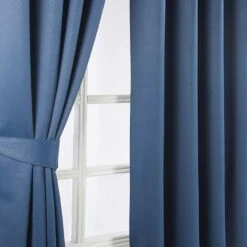 Navy Blue Herringbone Chevron Blackout Thermal Curtains Eyelet Style