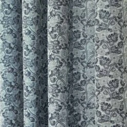 Blue Jacquard Curtain Modern Curve Design Fully Lined With Tie Backs