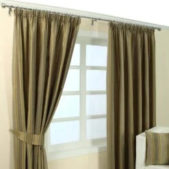Cream Jacquard Curtain Modern Striped Design Fully Lined With Tie Backs