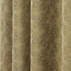 Gold Jacquard Curtain Vintage Floral Design Fully Lined With Tie Backs, 46 X 72″ Drop