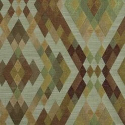Green And Gold Jacquard Curtain Geometric Diamond Design Fully Lined With Tie Backs