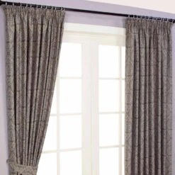 Grey Jacquard Curtain Abstract Ikat Design Fully Lined – 46″ X 90″ Drop