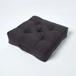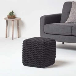 Black And Off-White Herringbone Jute Cube Pouffe 36 X 36 X 38 Cm