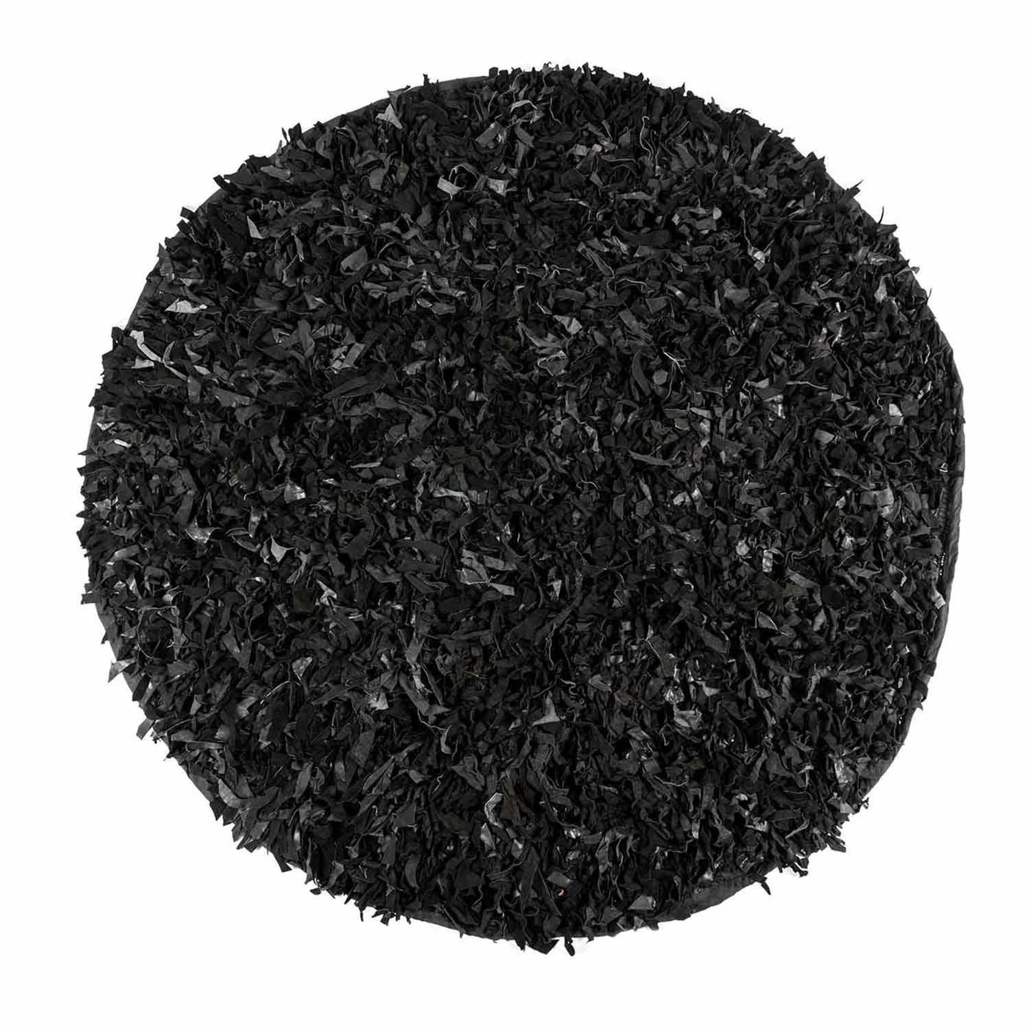 Dallas Leather Shaggy Rug Black, 150 Cm Round