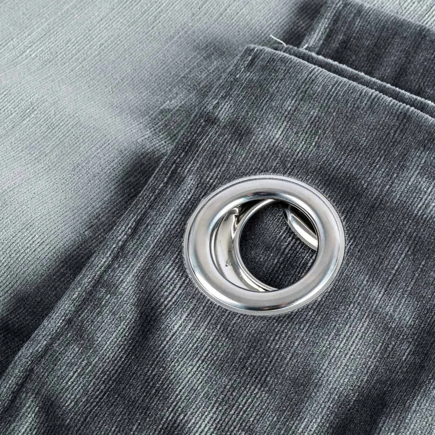 Velvet eyelet curtain pair from Homescapes in a neutral grey shade to compliment any interior style. Heavyweight curtains with interlining to keep heat in.