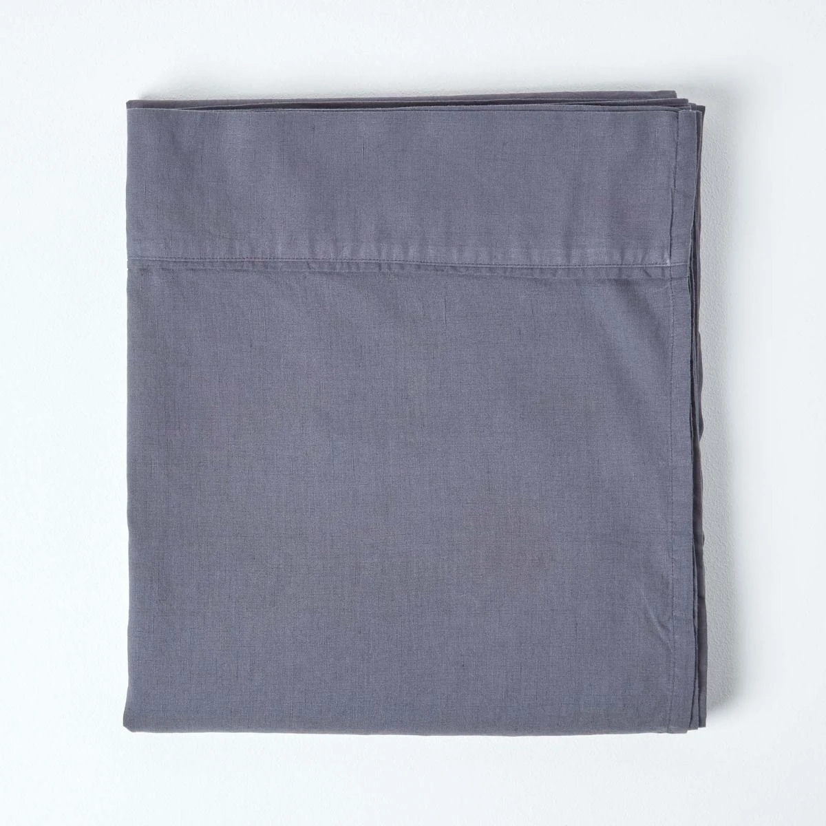 Dark grey linen flat sheet woven from a blend of French linen and premium combed cotton from the linen bed linen range at Homescapes. Available in four UK sizes.