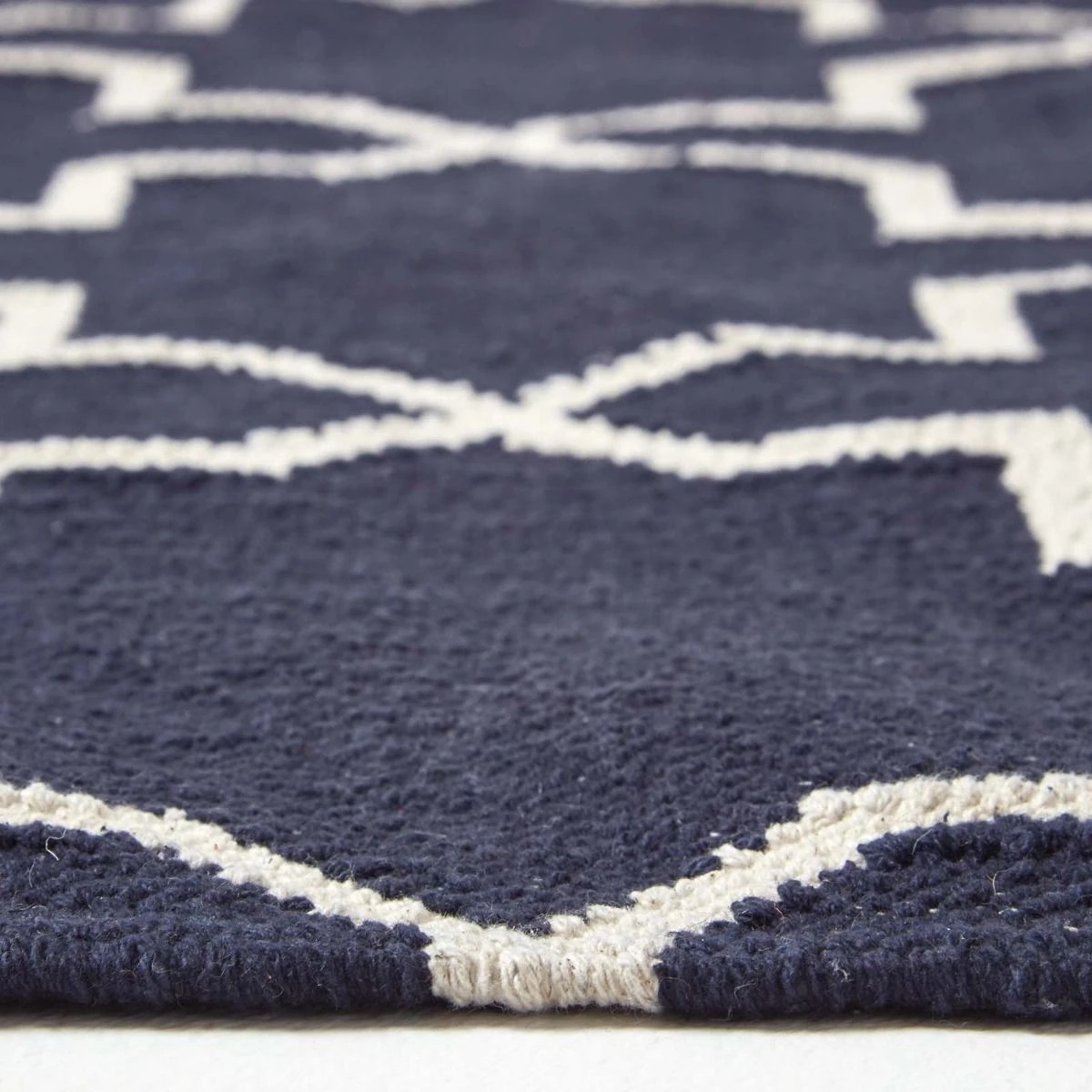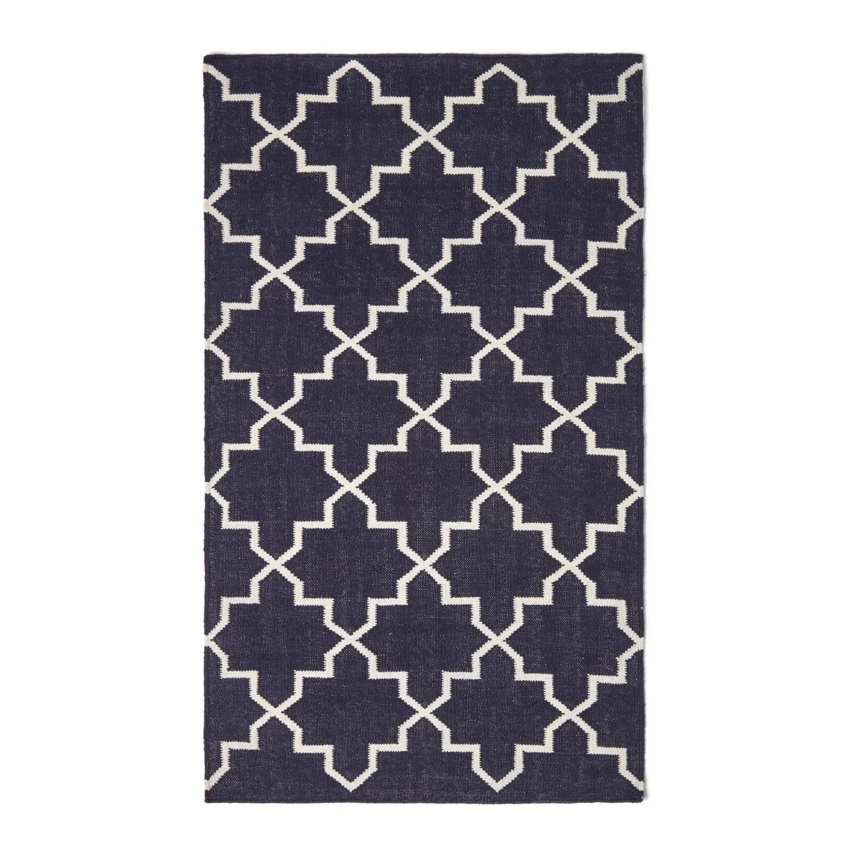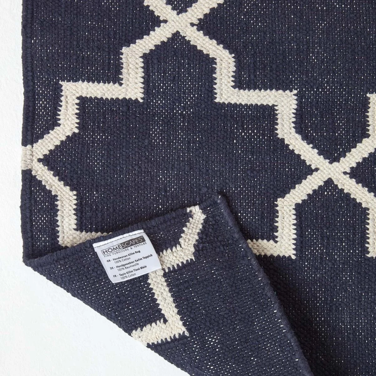 Edmonton is a dark navy rug that has a striking white geometric pattern to give a bold finish to your home décor. It is available in four sizes including a hall runner.
