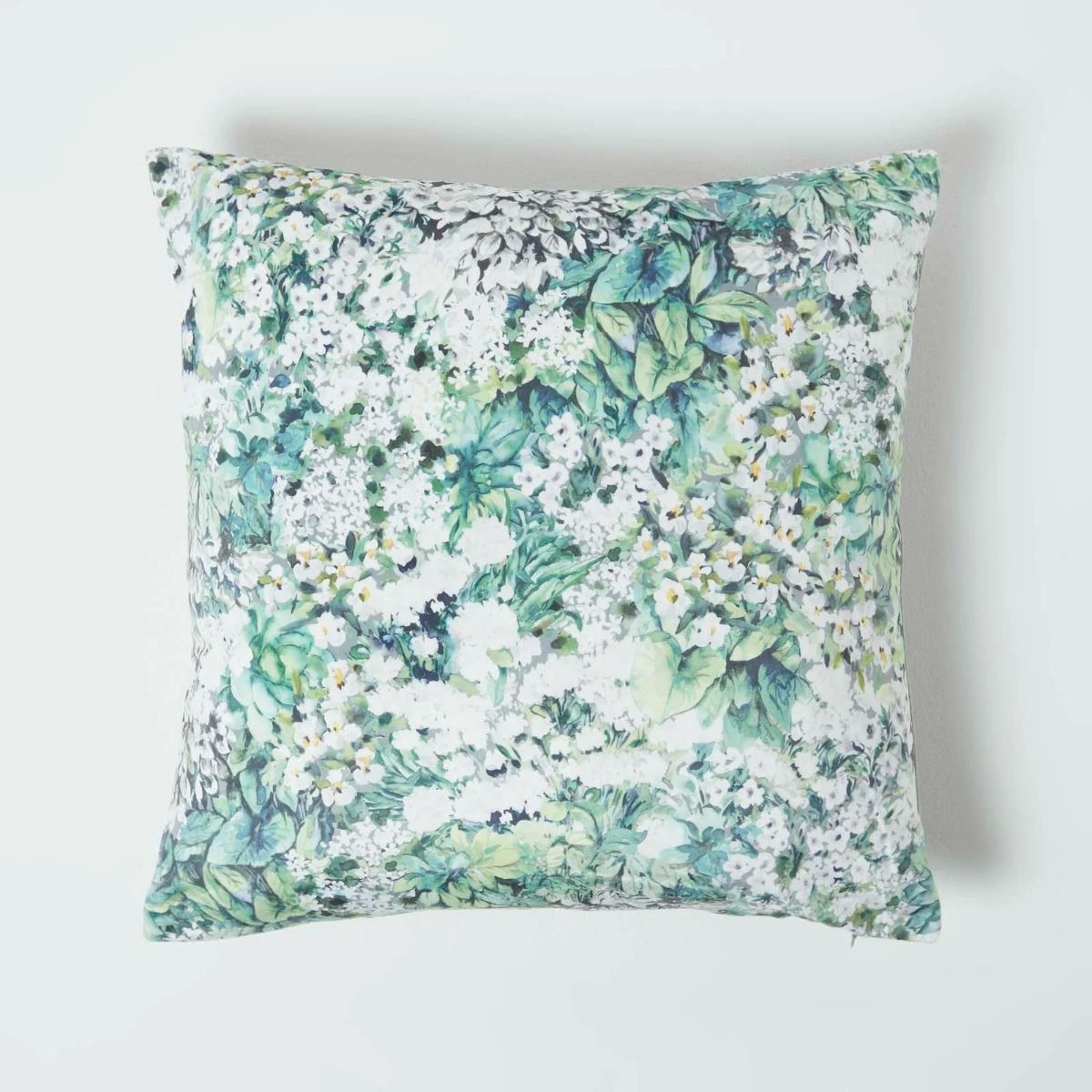 Grey Floral Cushion by Homescapes. Add a touch of nature to your home with the luxury floral velvet cushion, woven with a botanical print.