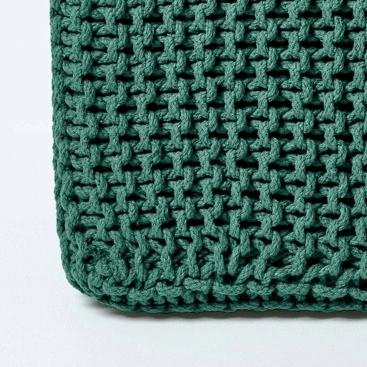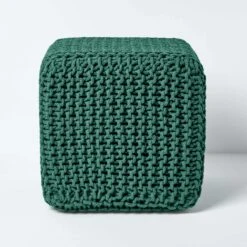 Forest Green Cube Cotton Knitted Pouffe Footstool