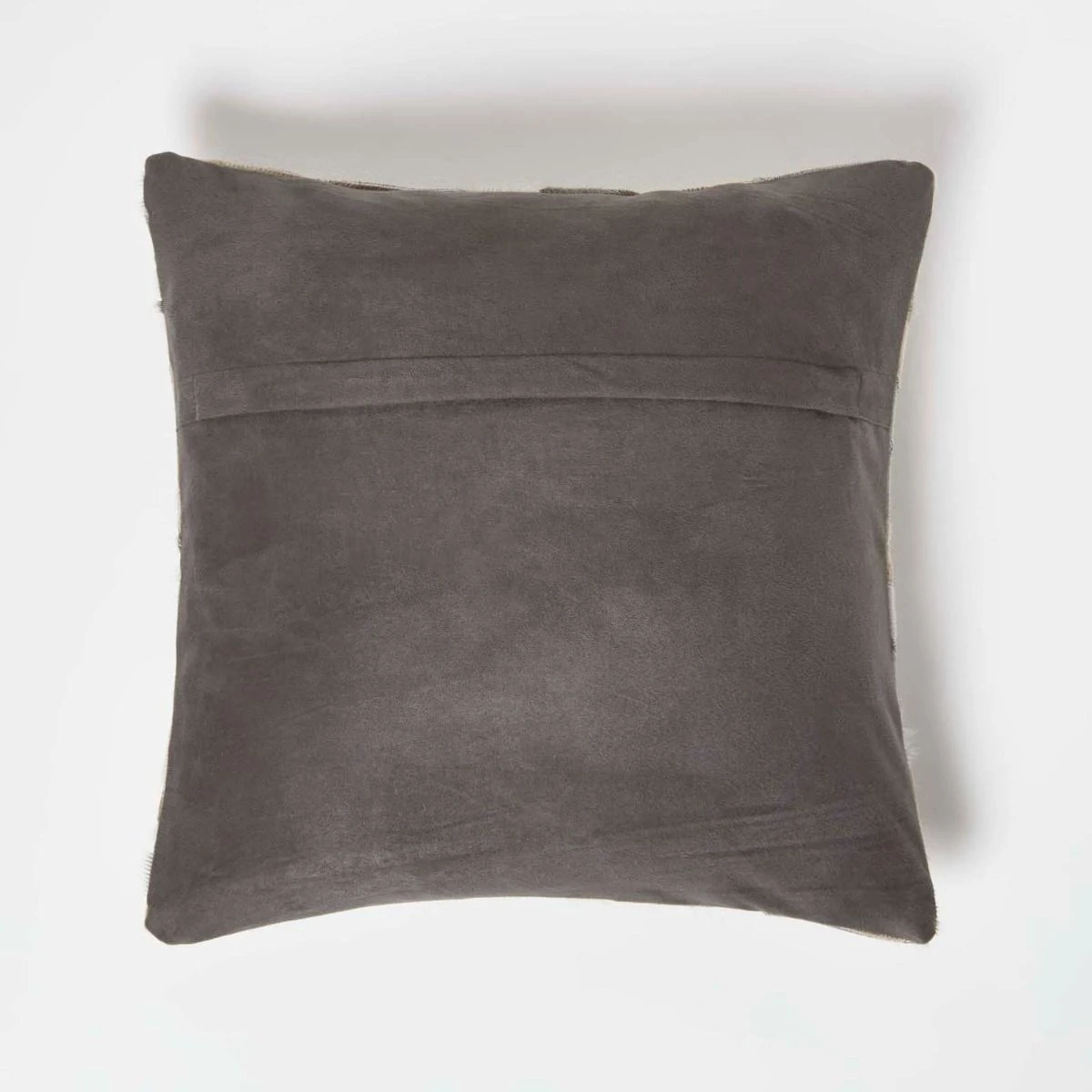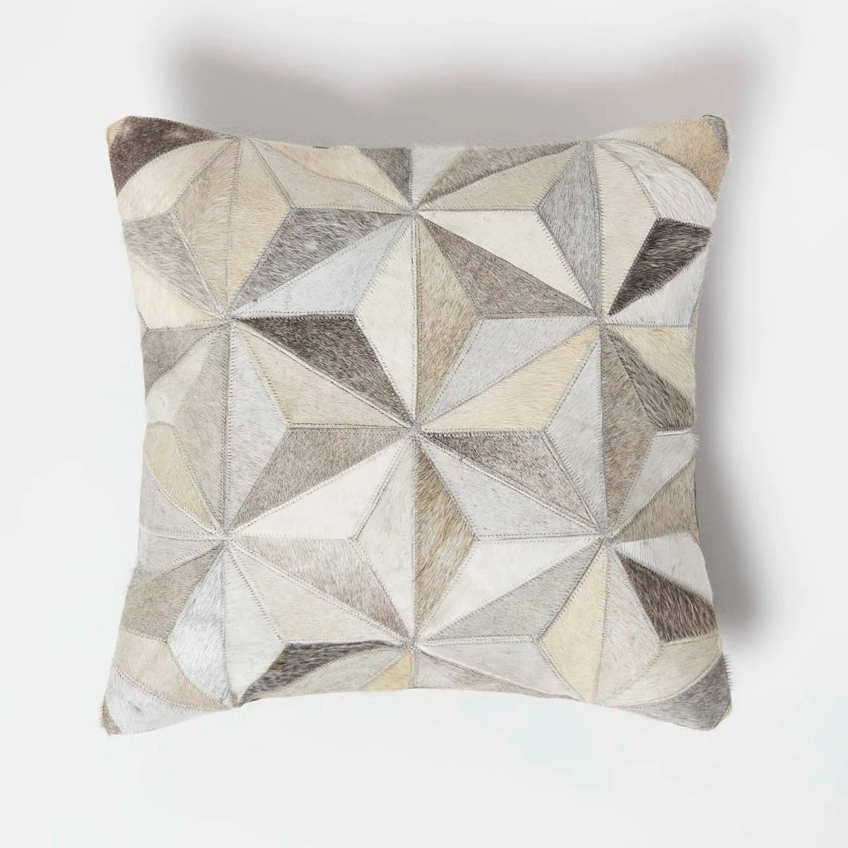 Crafted for comfort and style, this generously filled sofa cushion has a patchwork star leather hide front in shades of grey and cream. A textured cushion featuring an on-trend geometric design with a plain grey suede reverse, it’s the ideal statement piece for your living space or bedroom. Due to the natural materials used, each leather cushion may appear slightly different than the images shown.