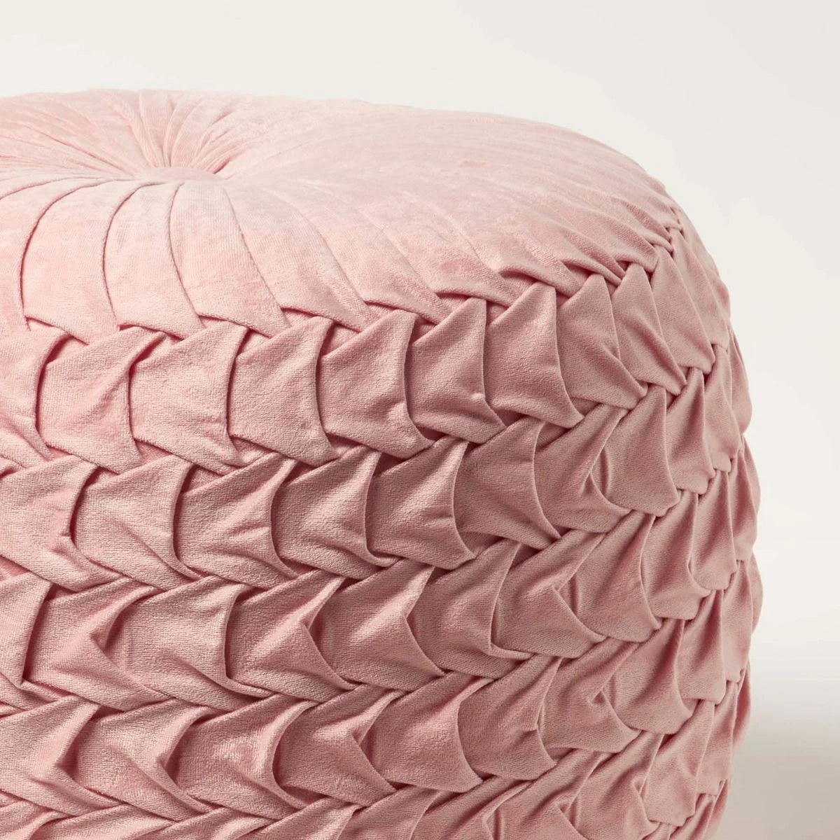 A timeless addition to any home, this pale pink pouffe combines the luxury feel of velvet with a must-have colour. Handcrafted and pleated around the edge, the unique pin tuck design is finished with an oversized button on the top and base. Pair with Homescapes’ matching pink Grace cushion for a complementing look.