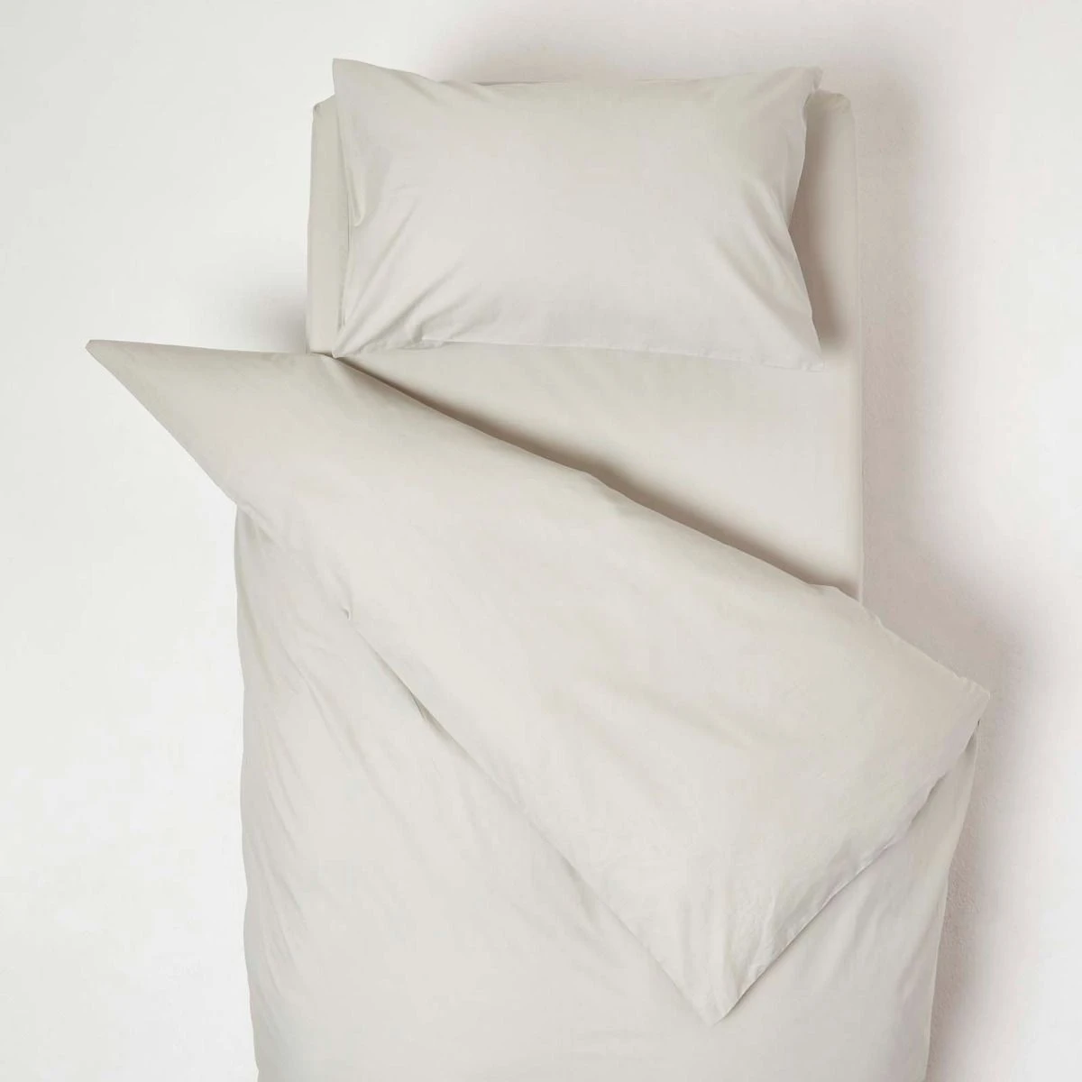 Super soft 200 thread count 100% cotton grey toddler duvet set, hypoallergenic cot bed duvet cover and pillowcase set plain cotton children’s bedding for toddler size beds.