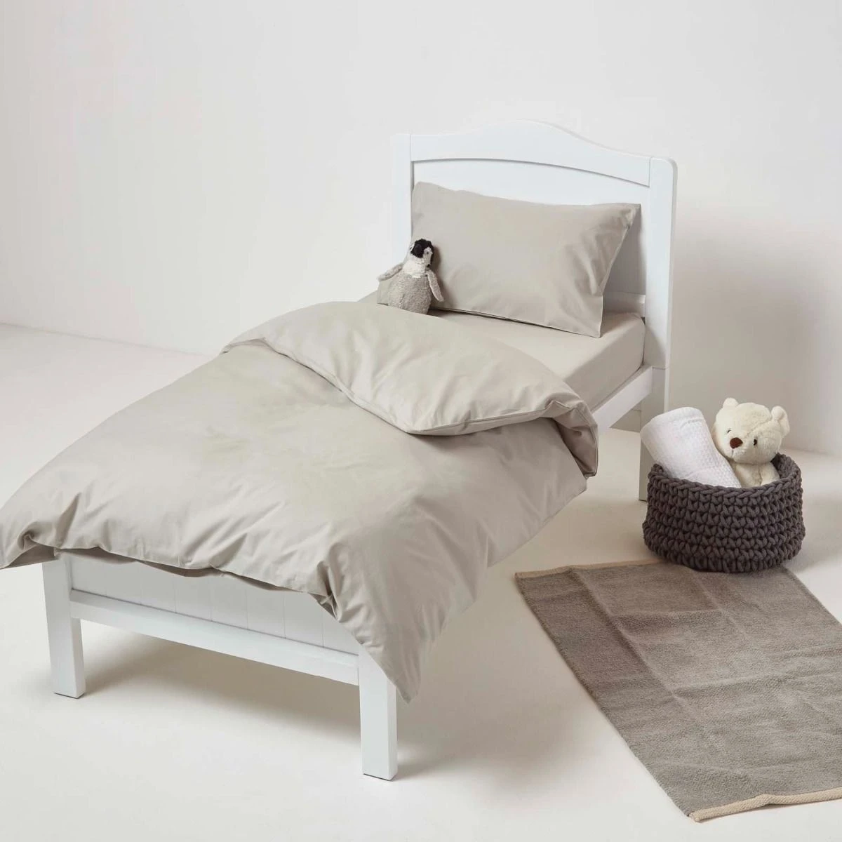 Woven from the purest Egyptian cotton, Homescapes’ grey cot bed duvet covers are a stylish addition to any child’s bedroom. Naturally breathable, hypoallergenic and anti-dust mite, cotton is the perfect choice for baby bedding, keeping your child warm in winter and comfortable in summer, wicking away any moisture so that your child gets the perfect night’s rest.