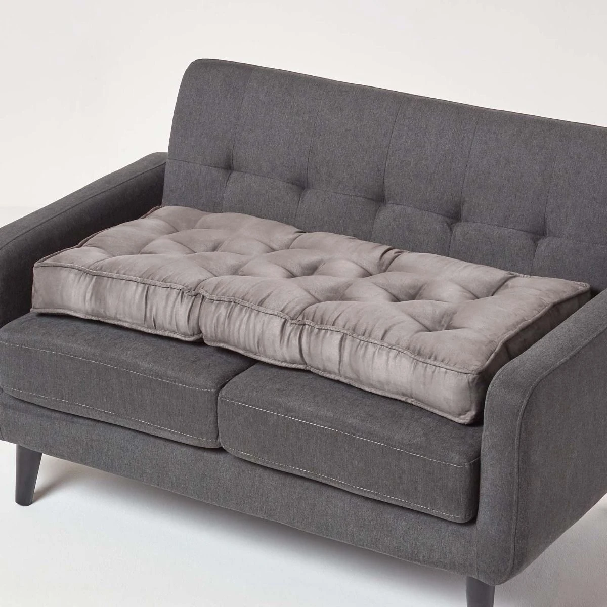 Woven from super soft faux suede, this grey booster cushion is designed to fit your 2 seater sofa, measuring 100 cm wide. Ideal for the elderly or those recovering from surgery.