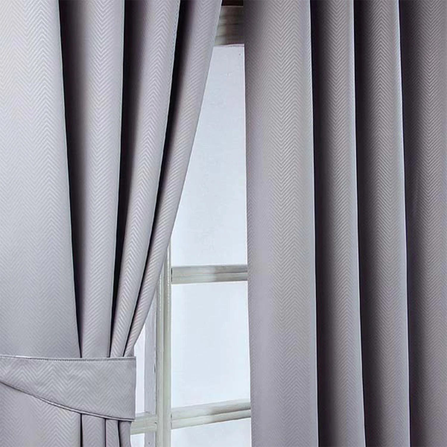 Our grey herringbone chevron pattern is stylish in its simplicity and works well with most decors. The blackout lining is sandwiched inside the curtains, so they look great from the front and back, and, as they’re eyelet curtains, they’re quick and easy to hang. We also offer our herringbone chevron pattern as ready made pencil pleat curtains, and stock a range of coordinating accessories, including curtain tie backs and cushions.