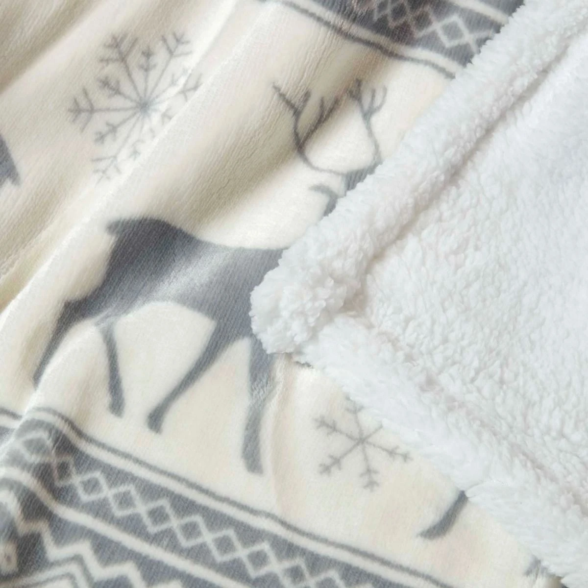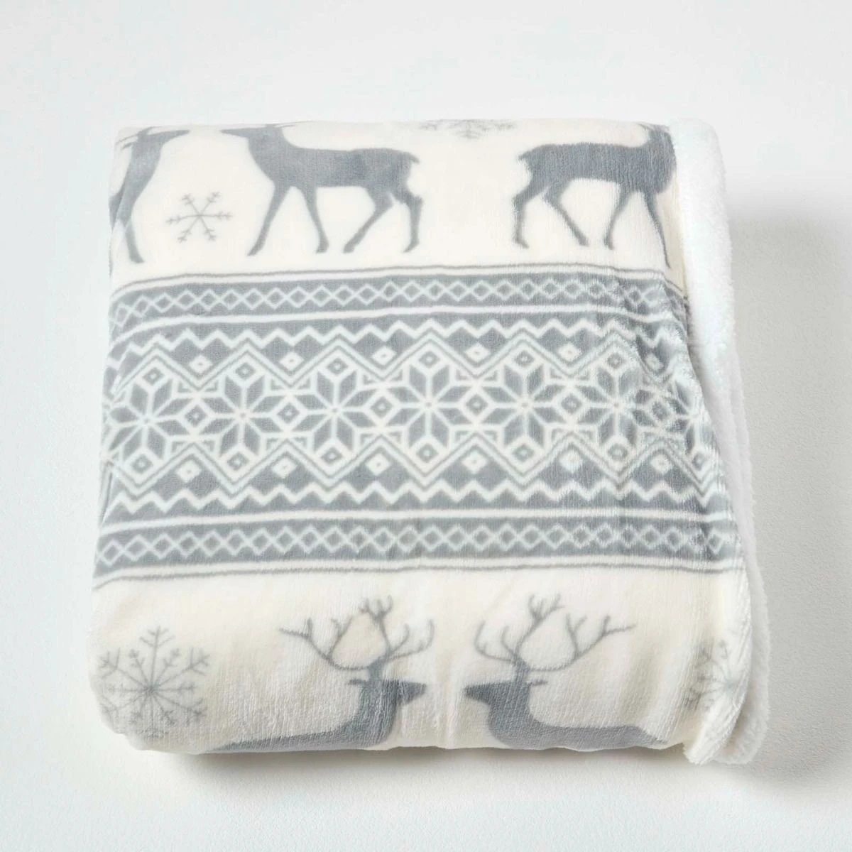 The perfect gift for Christmas and the winter season, this Christmas throw blanked has a grey and white pattern with a soft fleece-like Sherpa reverse. Easy to care for, this throw can be machine washed and tumble dried and is designed for regular daily use.