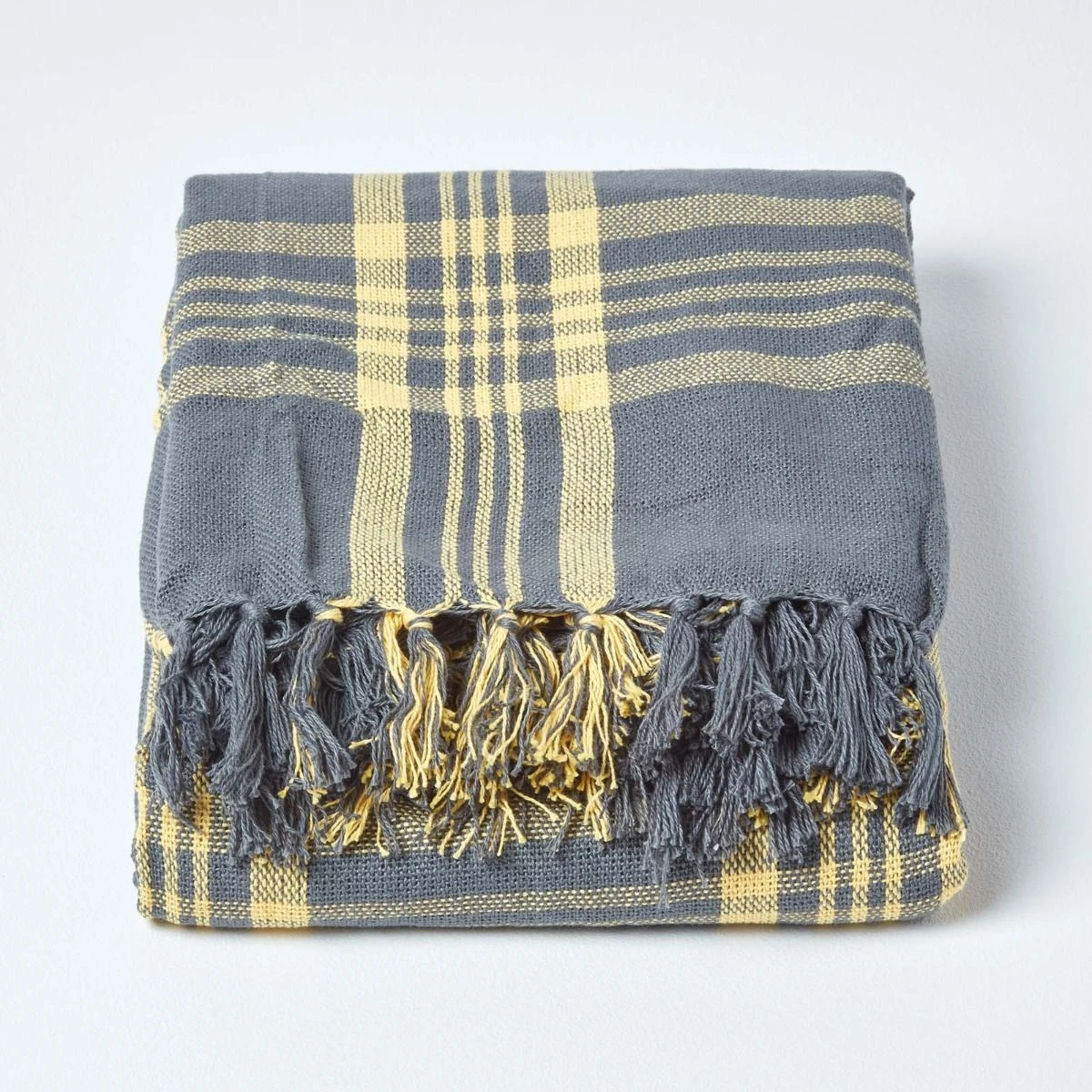 Grey & Yellow Tartan Check Sofa And Bed Throw