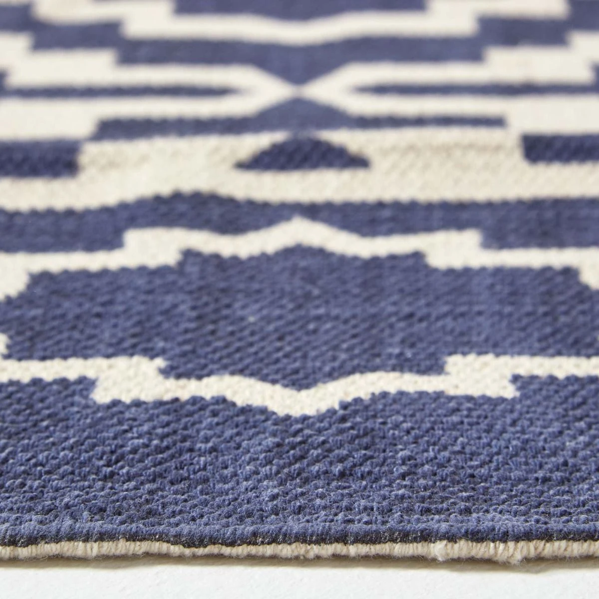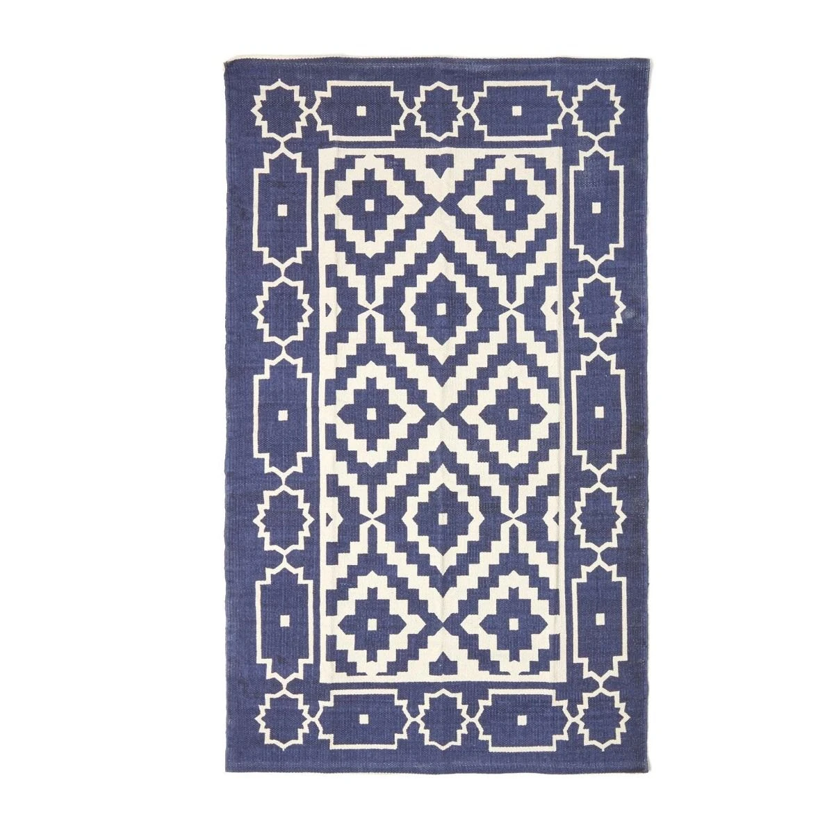 This white and blue rug is inspired by Scandi home style and is woven from 100% cotton. This rug is available in four sizes including a runner.