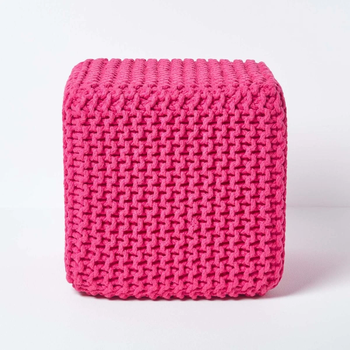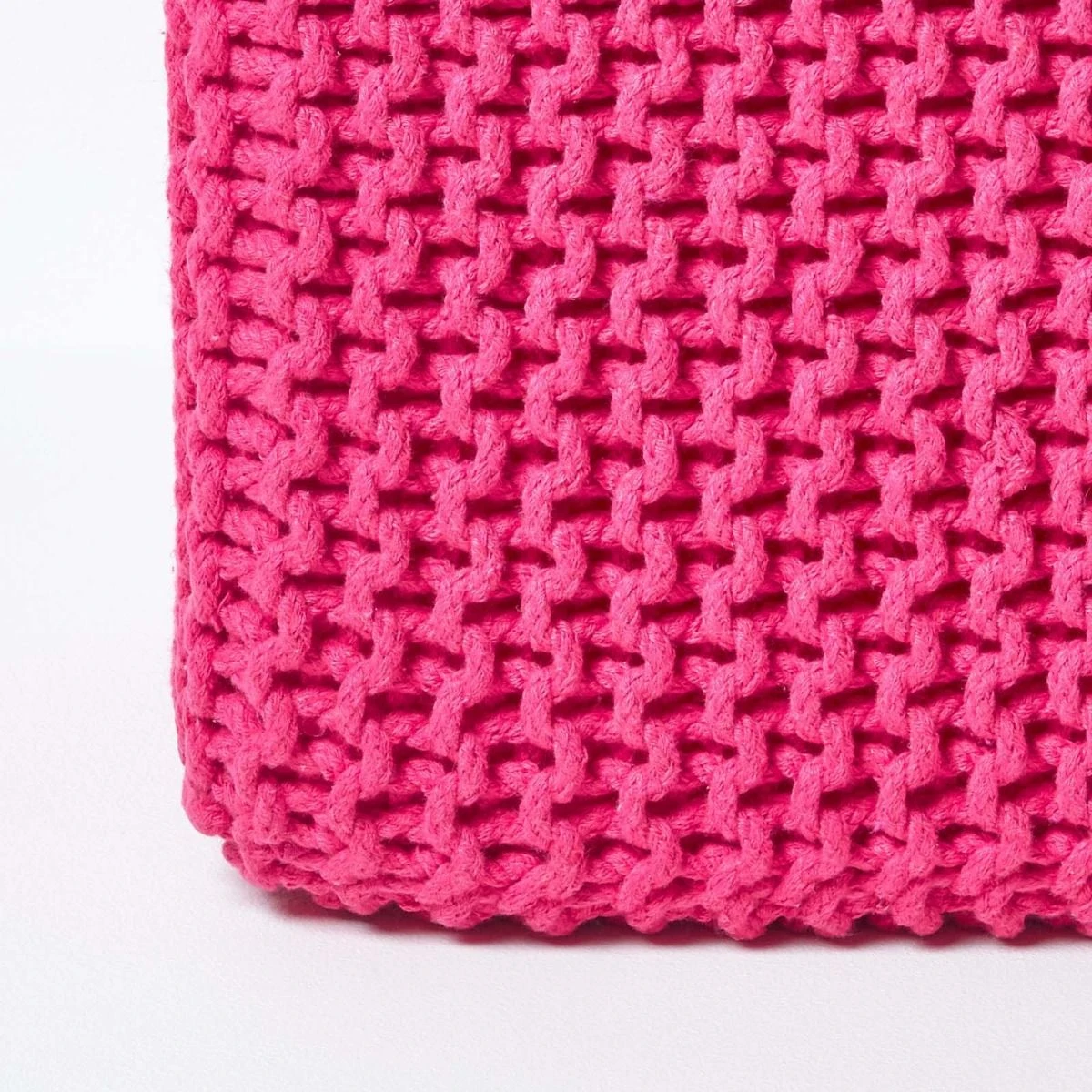 Add a pop of colour to your home with this stylish 100% cotton chunky knitted cube pouffe, this vibrant hot pink lightweight footstool measures 35cm square.
