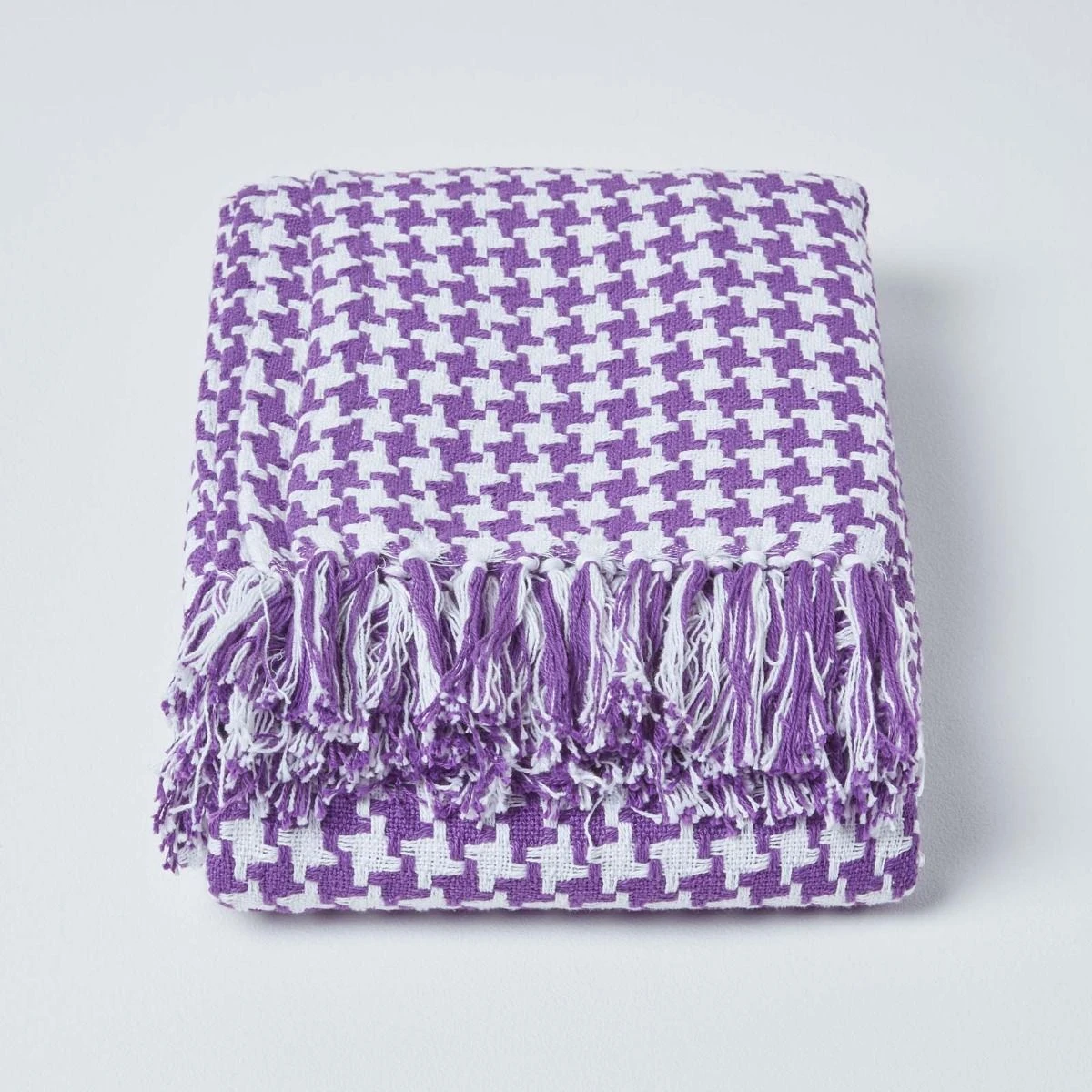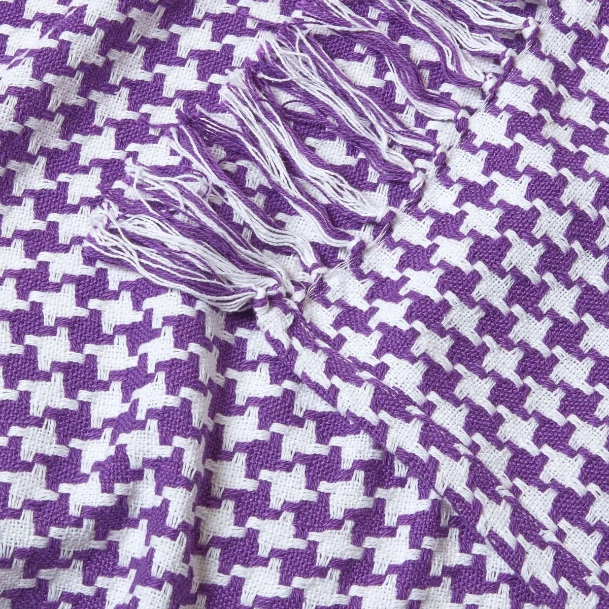 Houndstooth 100% Cotton Bedspread Throw Purple