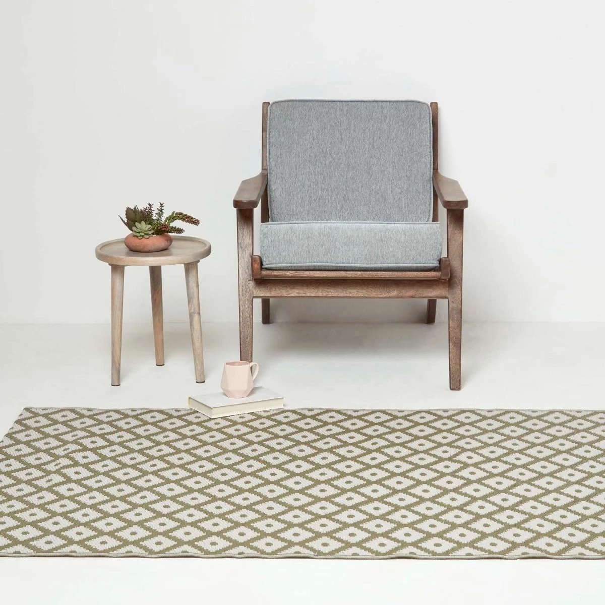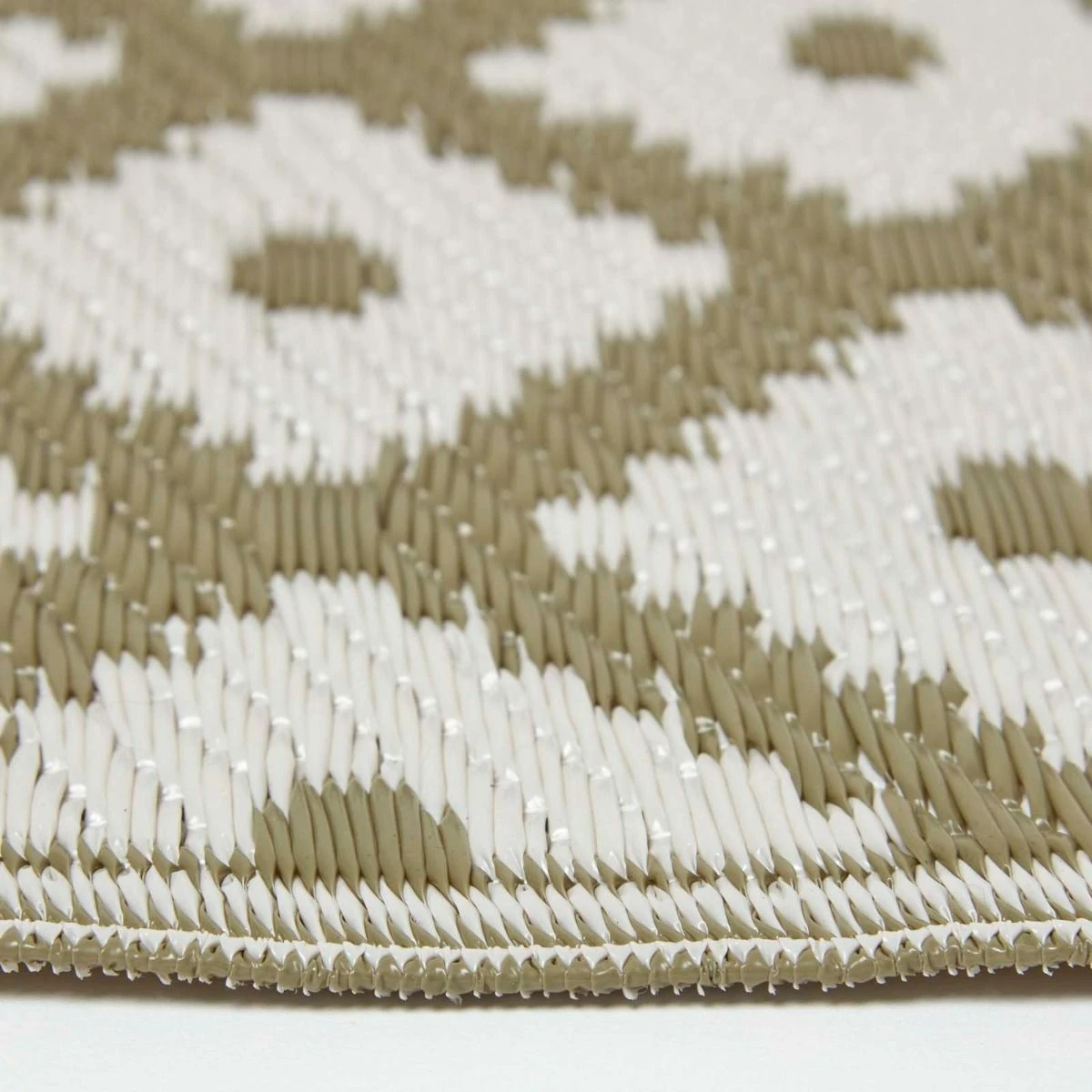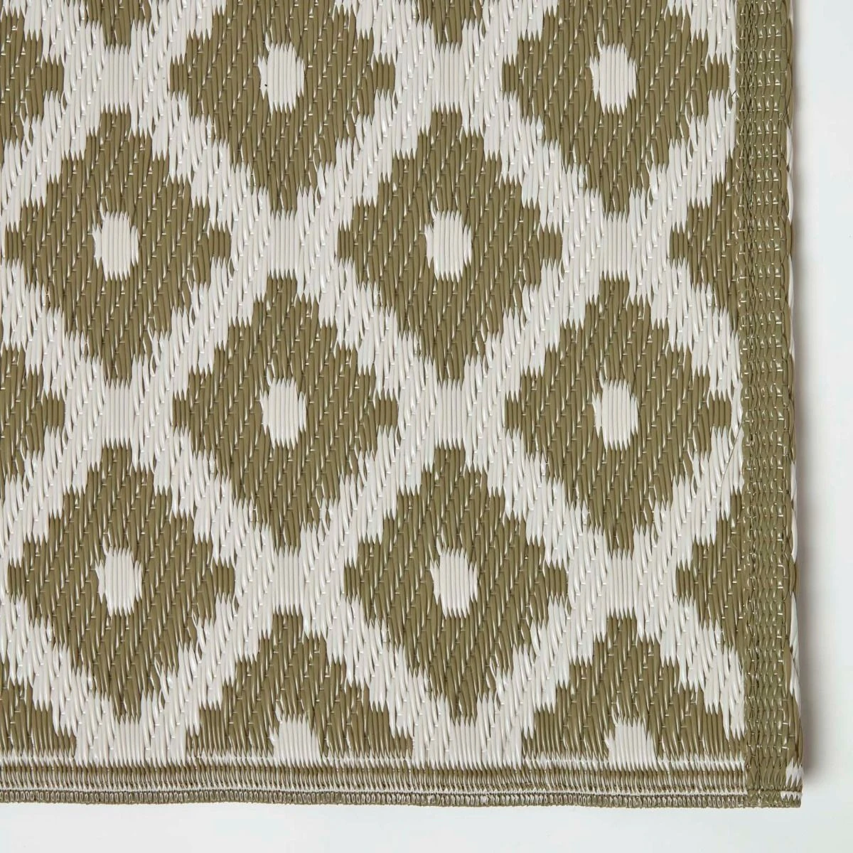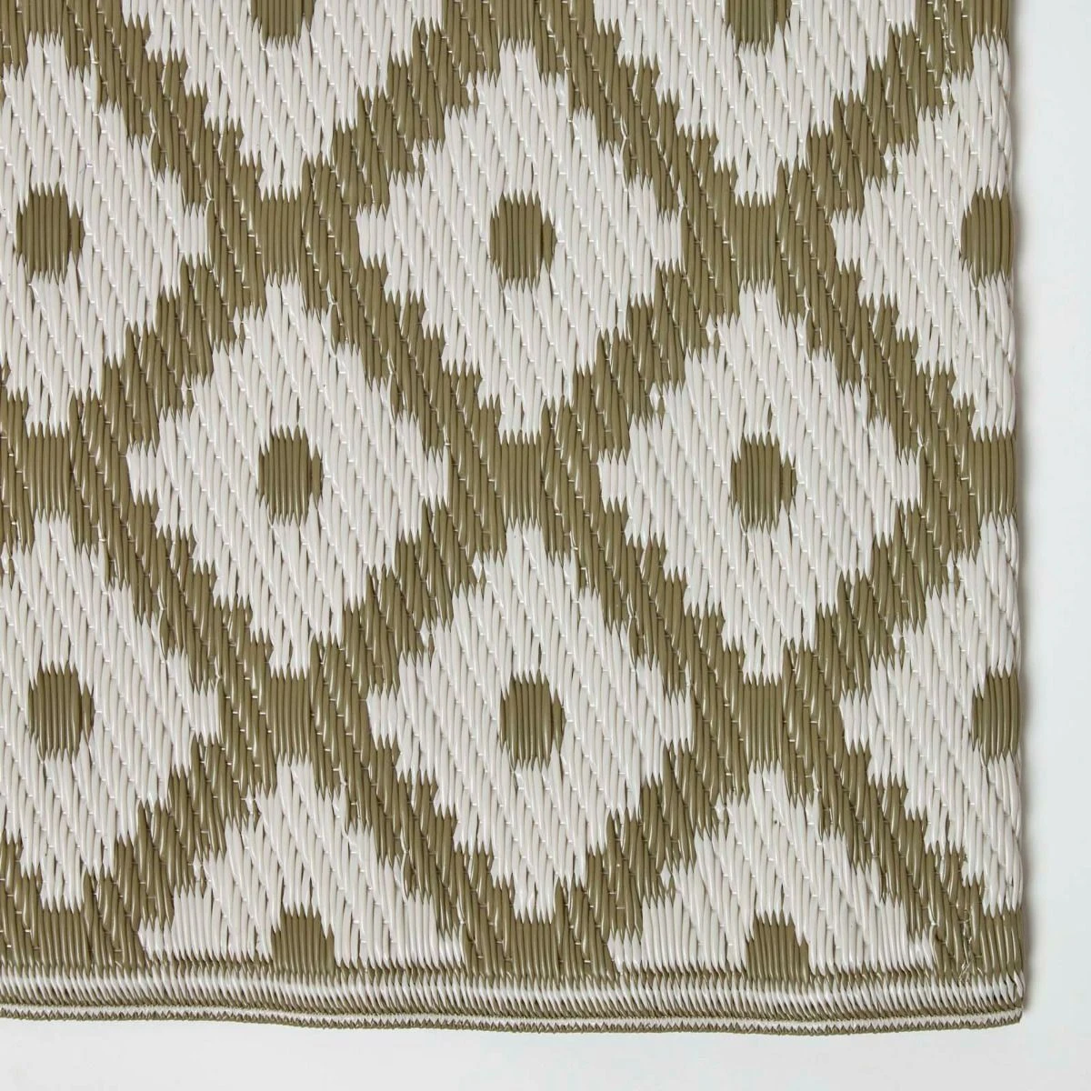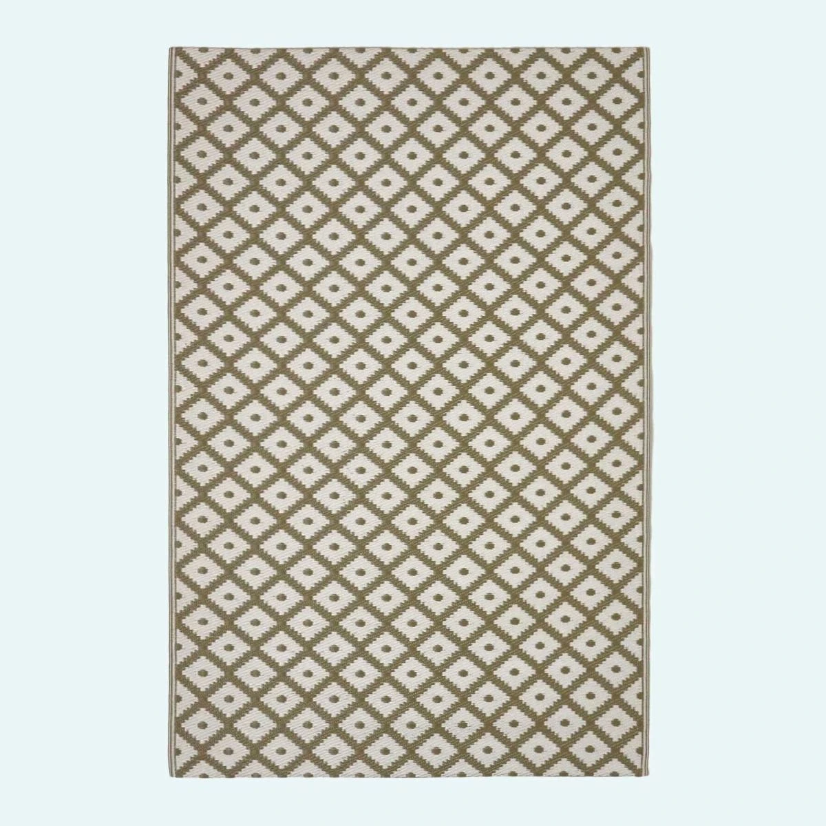 A traditional geometric design in olive and white, for a neutral on-trend look. Great for adding style to any patio, garden or balcony, this versatile outdoor rug can be wiped or hosed down as needed.
