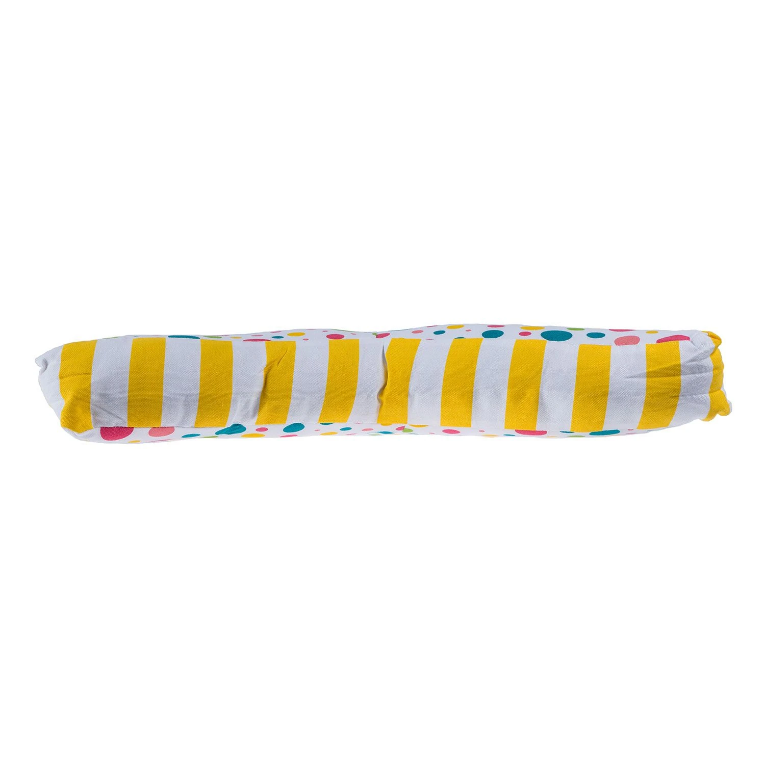 Multi colour polka dot cushion, this colourful cushion will introduce a vibrant array of colour into your home. Covered in 100% cotton this pink, blue, yellow and green dotty star shaped cushion with yellow and white thick striped sides is suitable for indoor and outdoor use. Part of Homescapes’ collection of garden floor cushions and seat pads.